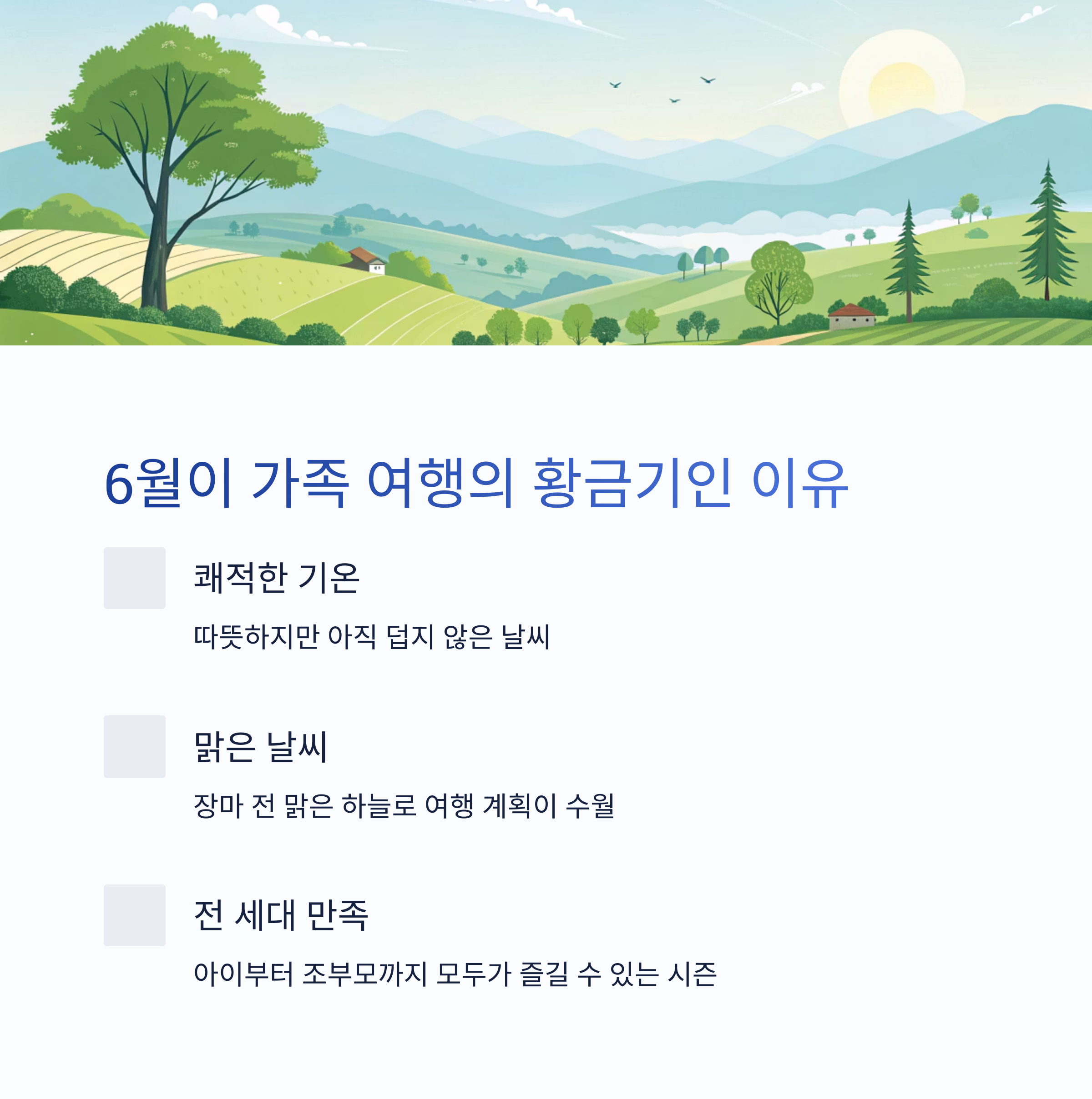 이번 글에서는 아이부터 부모, 조부모까지 모두가 만족할 수 있는 6월 가족 여행지를 소개합니다
