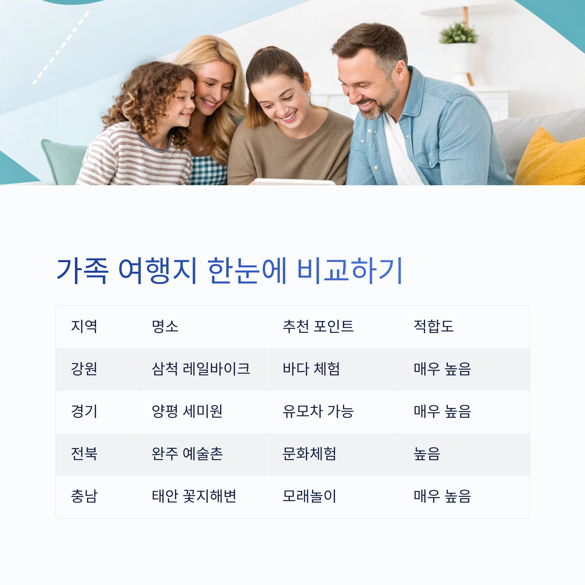 다세대 가족 여행에 추천되는 힐링 여행지입니다