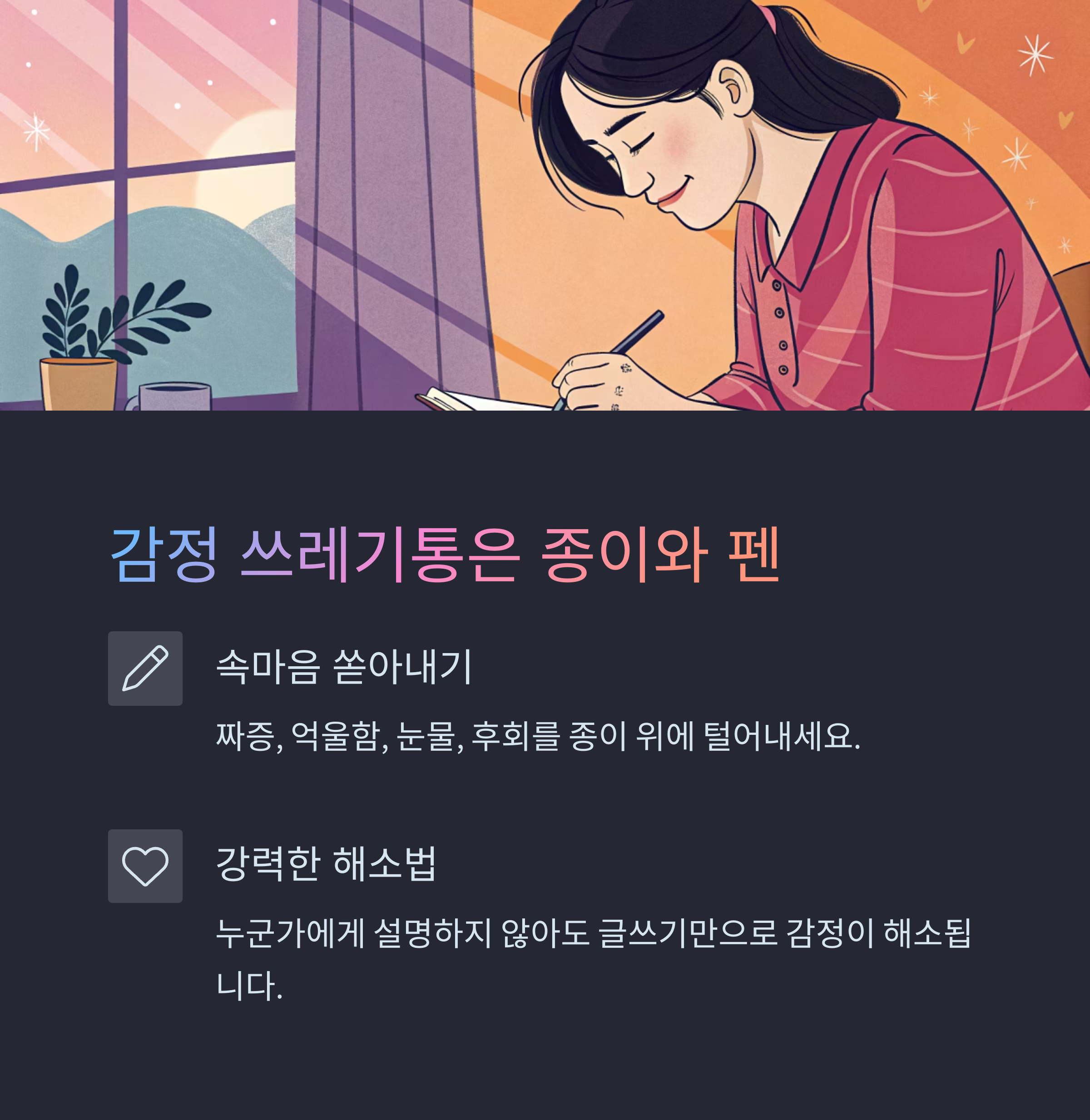 속마음을 그대로 쏟아내는 글쓰기는