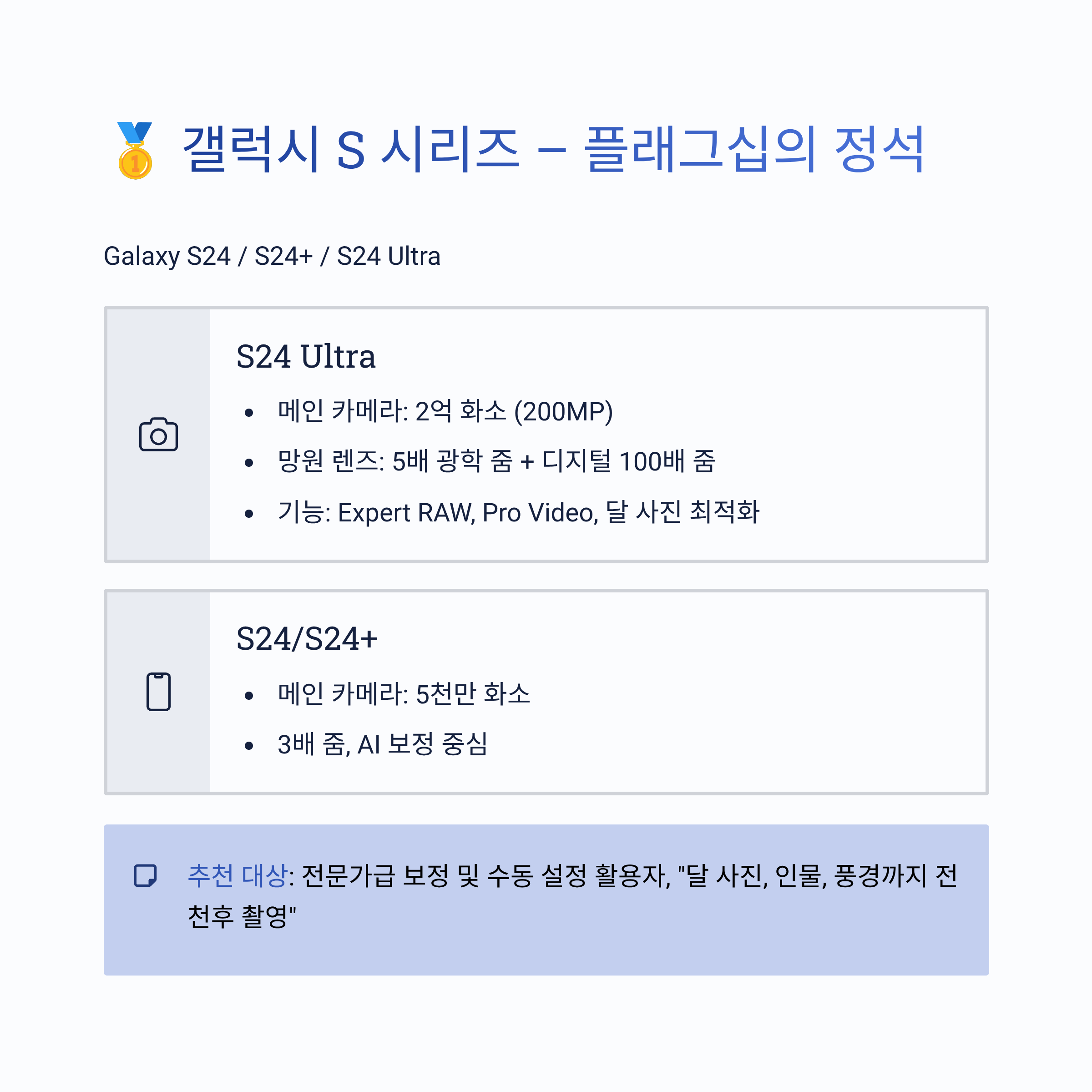 - 필요하다면 S24 Ultra 이상의 모델로 가세요.