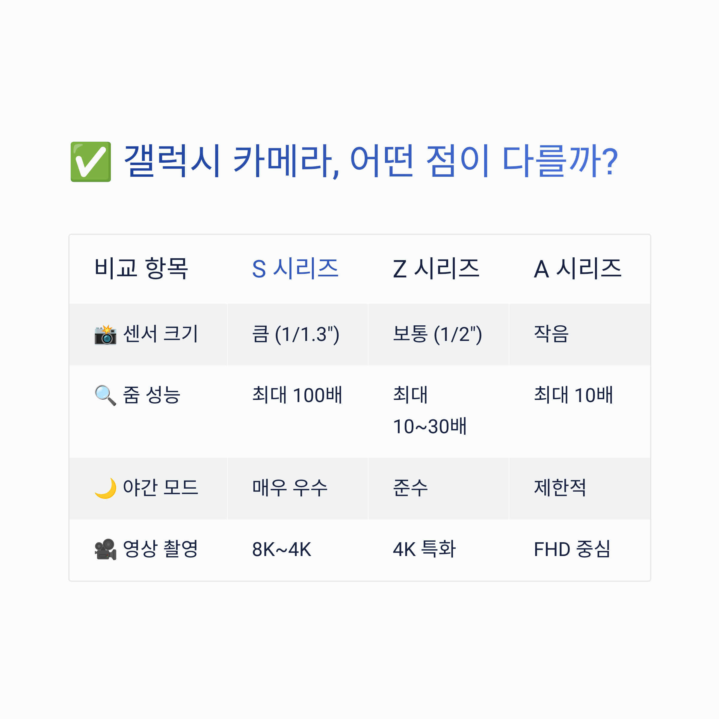 S 시리즈, Z 시리즈, A 시리즈의 카메라를 용도별로 비교 분석해드립니다!