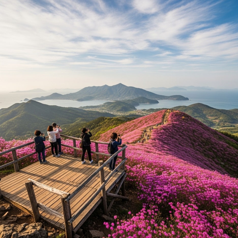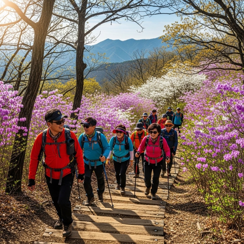 땀 흘리며 올라온 뒤 마주하는 정상의 진달래 군락지는 그야말로 감동 그 자체예요.