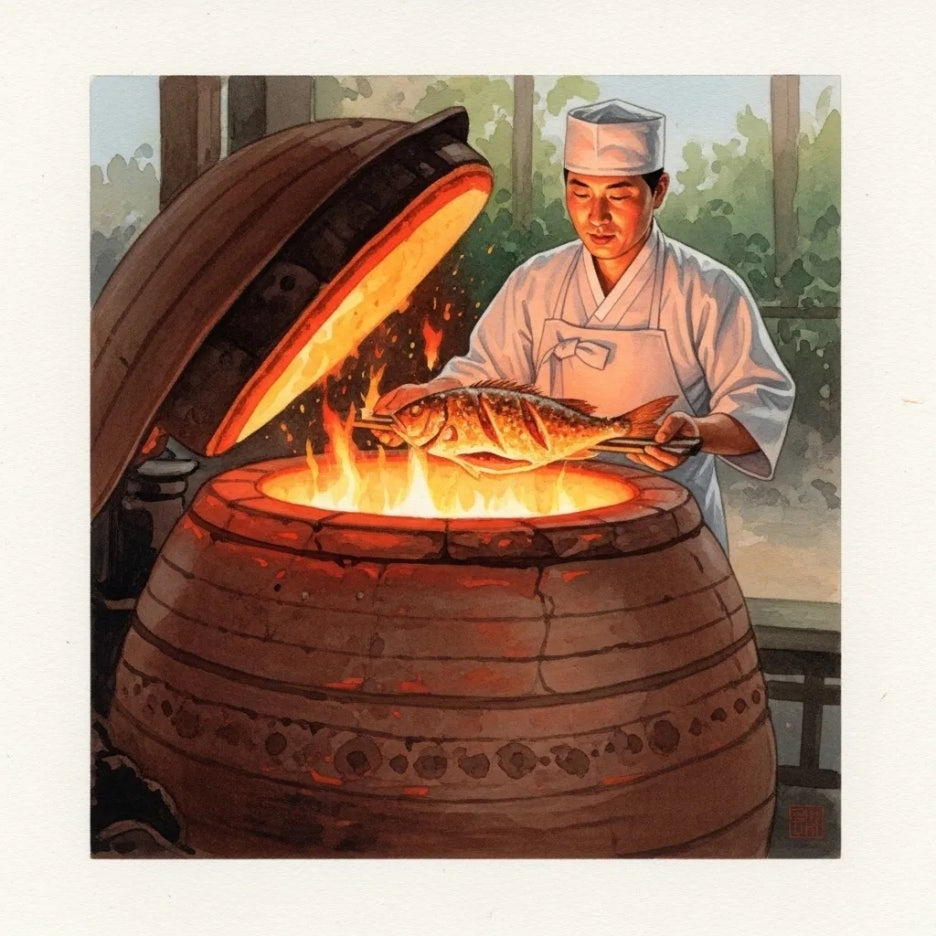 이곳에서는 500도가 넘는 화덕에서 생선을 구워낸다고 해요.