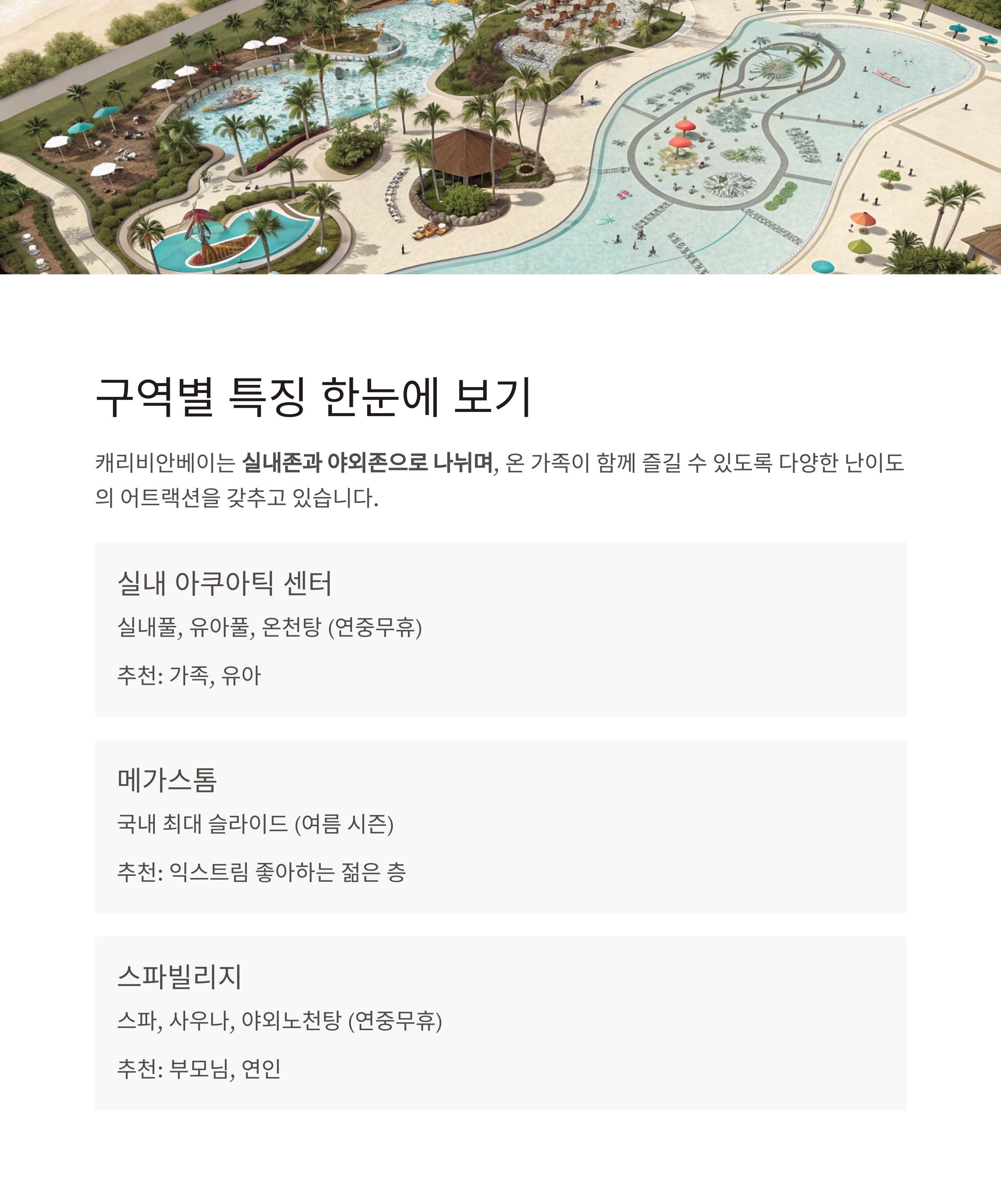 본 글에서는 캐리비안베이의 주요 시설, 시즌별 추천 구역,