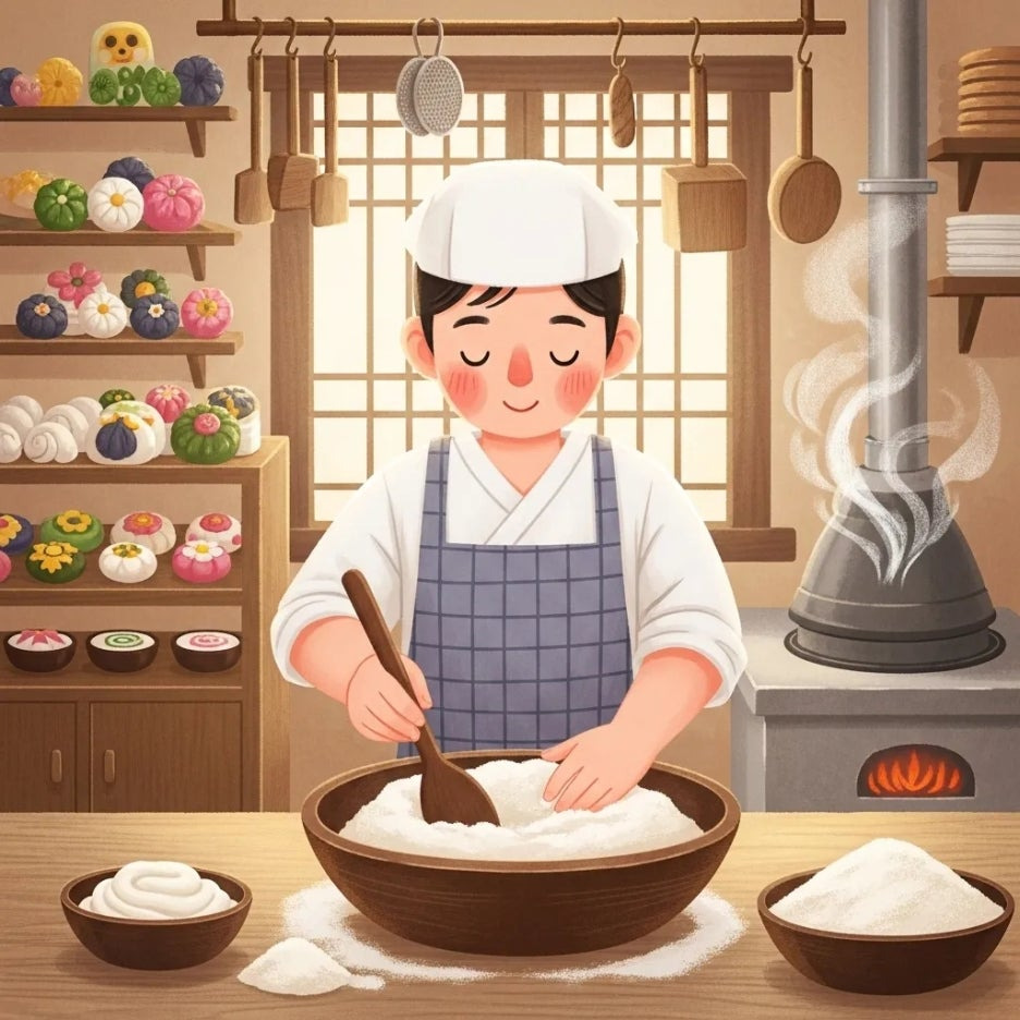 일반 밀가루 대신 찹쌀과 멥쌀을 황금비율로 섞어 만든다고 합니다.