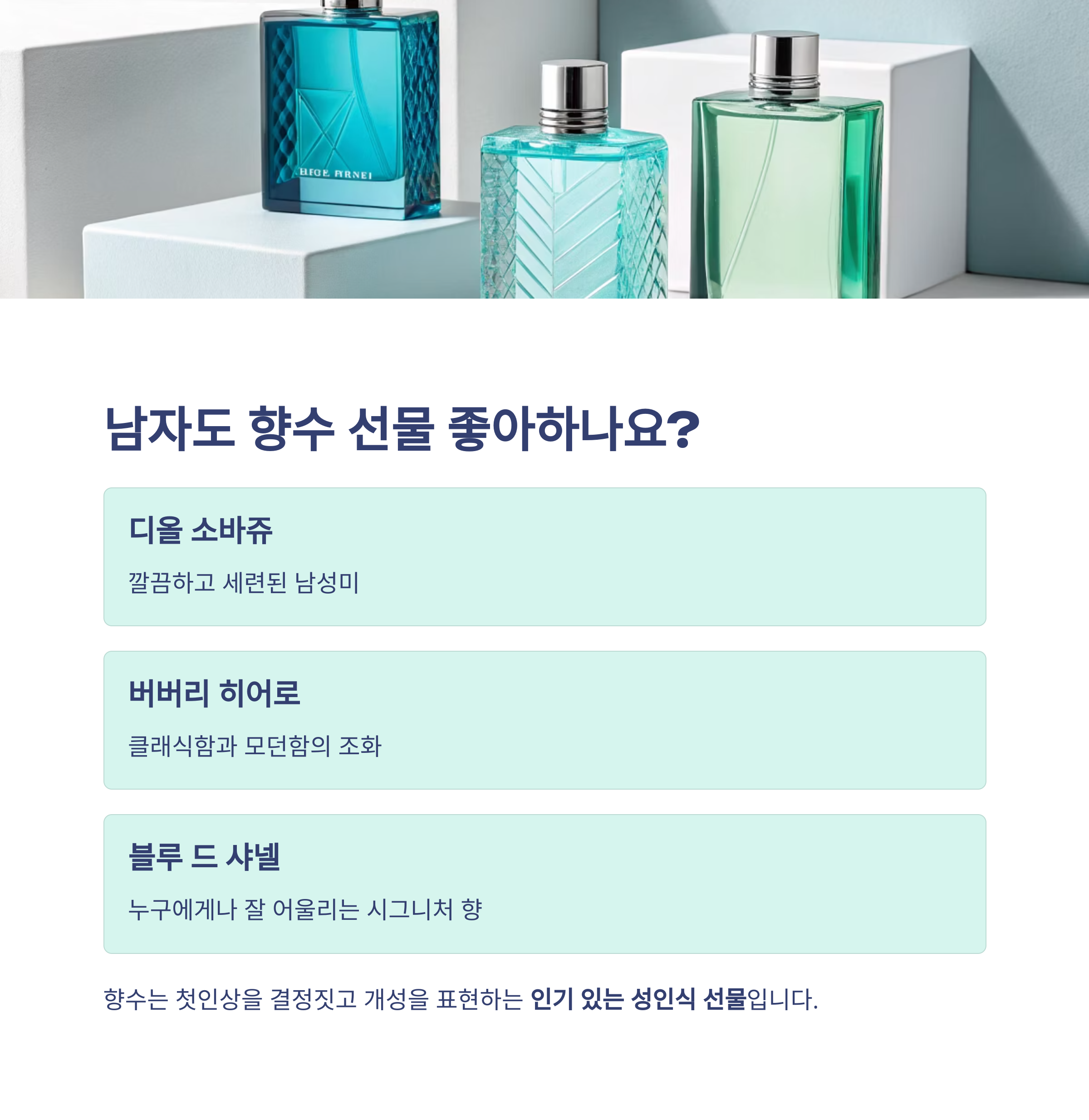 | 2 | 향수 | 자기 표현, 성숙함 | 감성적인 남성 |