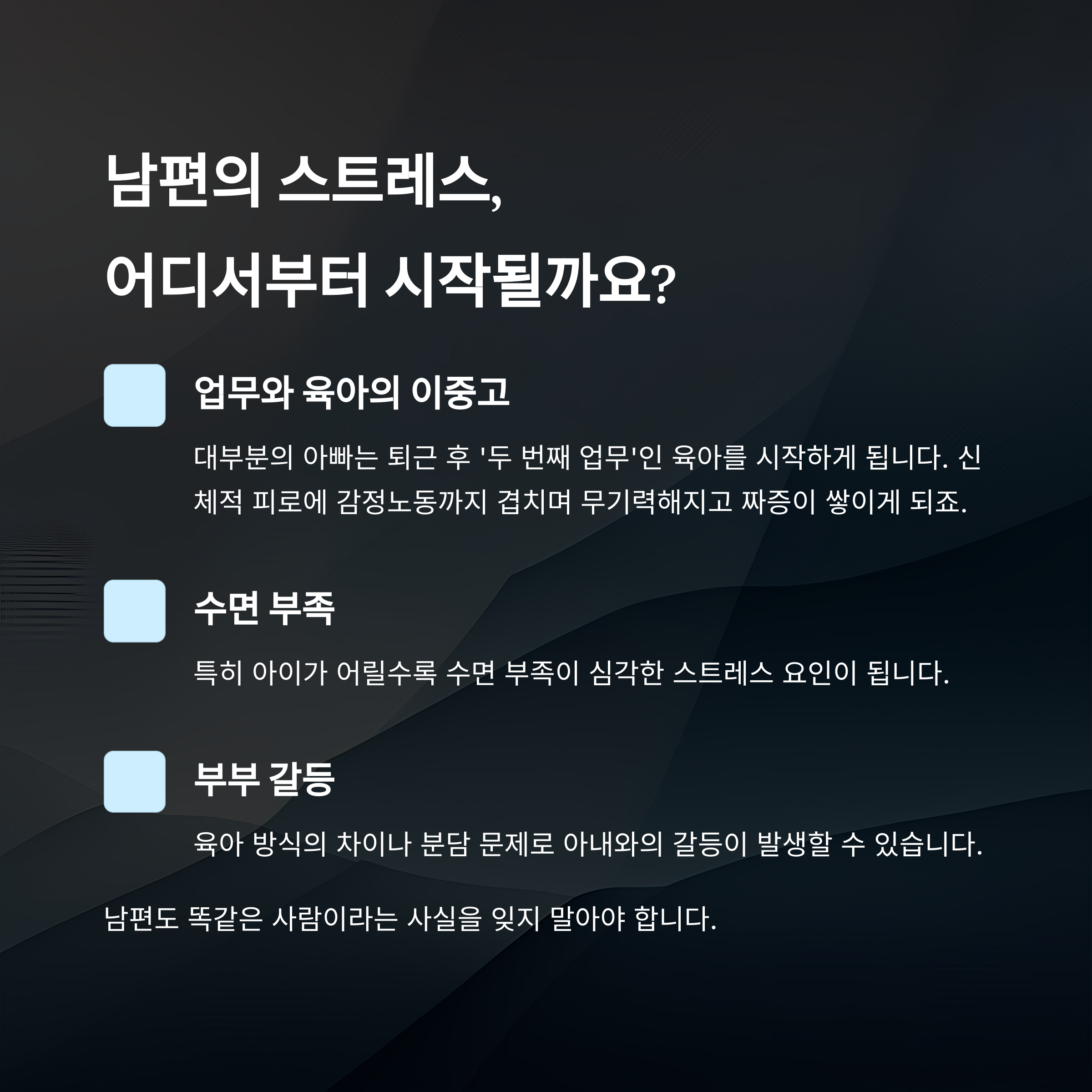 이 글에서는 남편이 육아로 인해 겪는 스트레스의 원인과