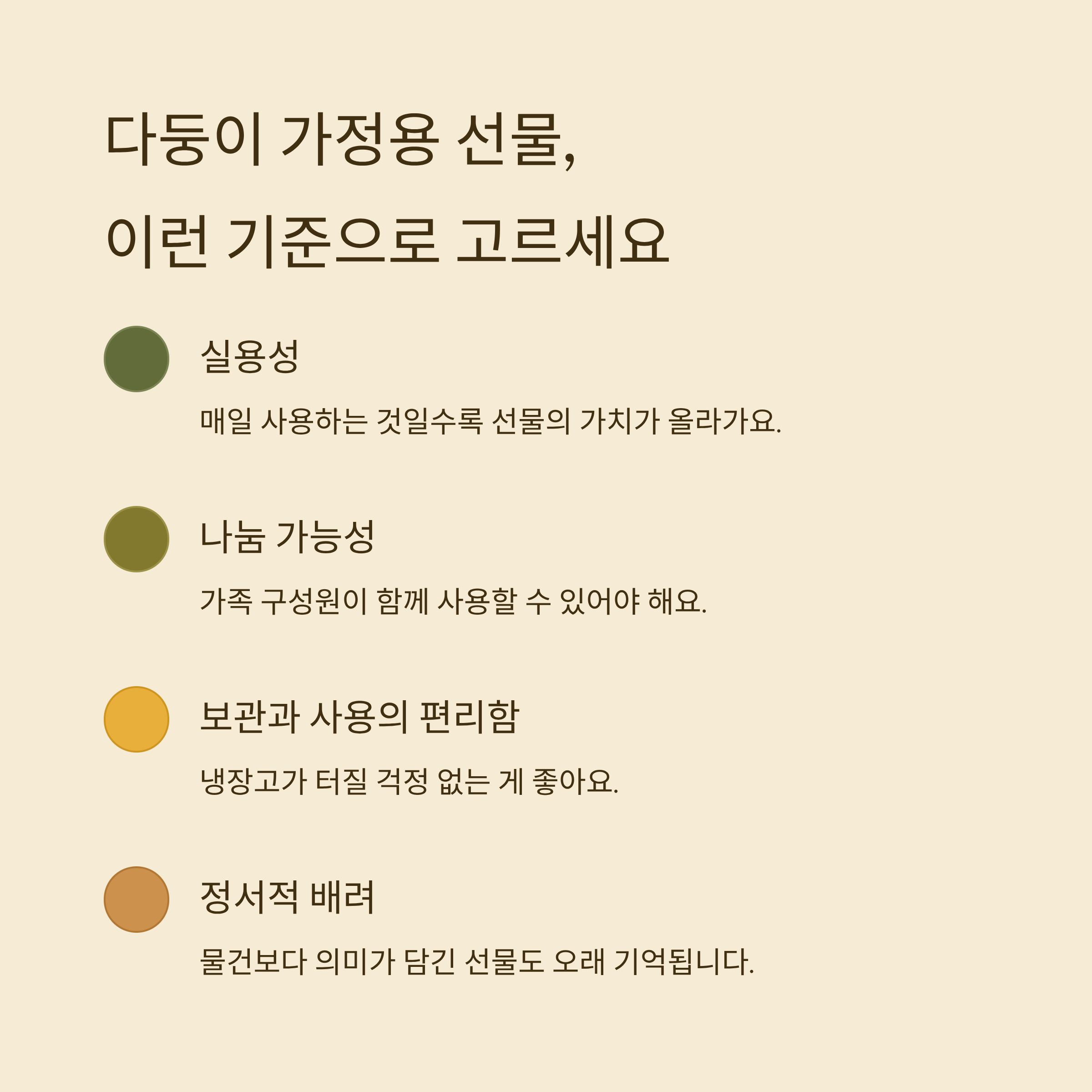 | ✔ 실용성 | 매일 사용하는 것일수록 선물의 가치가 올라가요. |