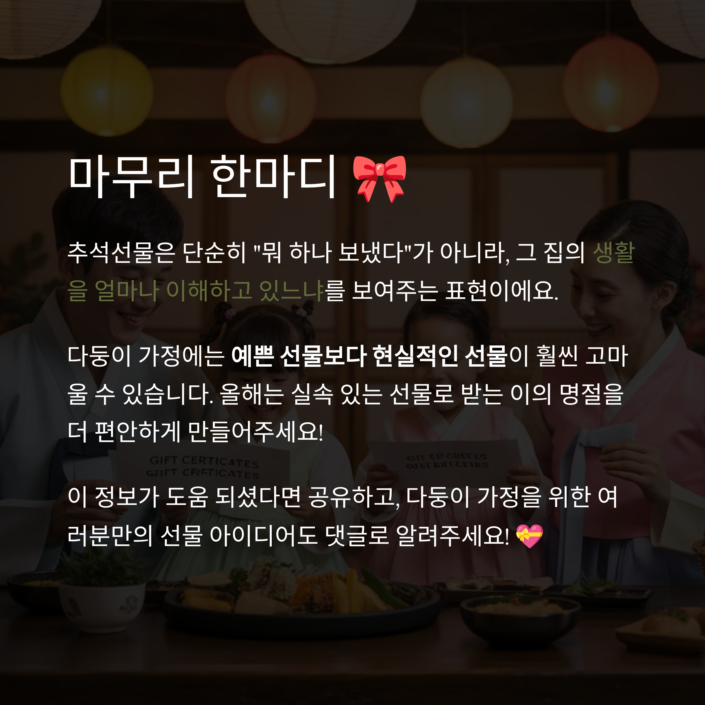 📝 요약: 다둥이 가정 추석선물 베스트 리스트