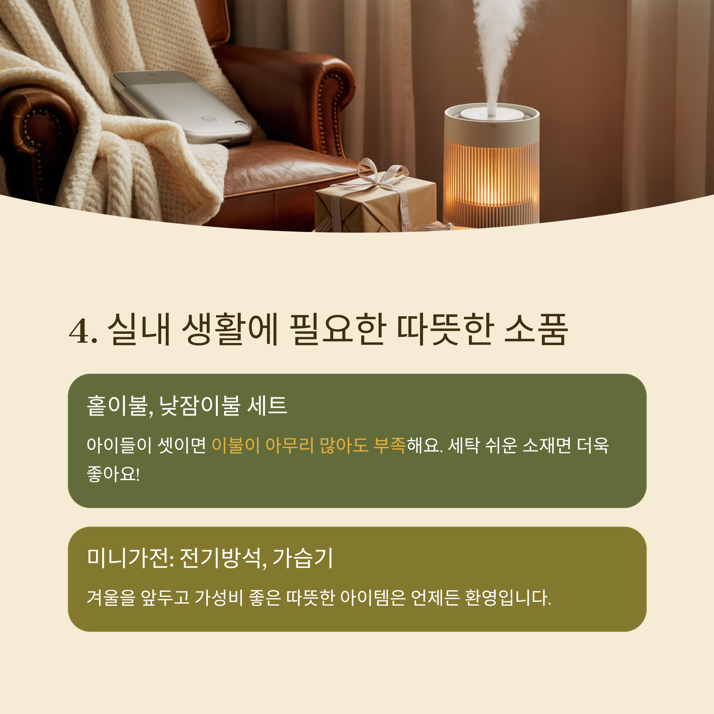 🛌 4. 실내 생활에 필요한 따뜻한 소품