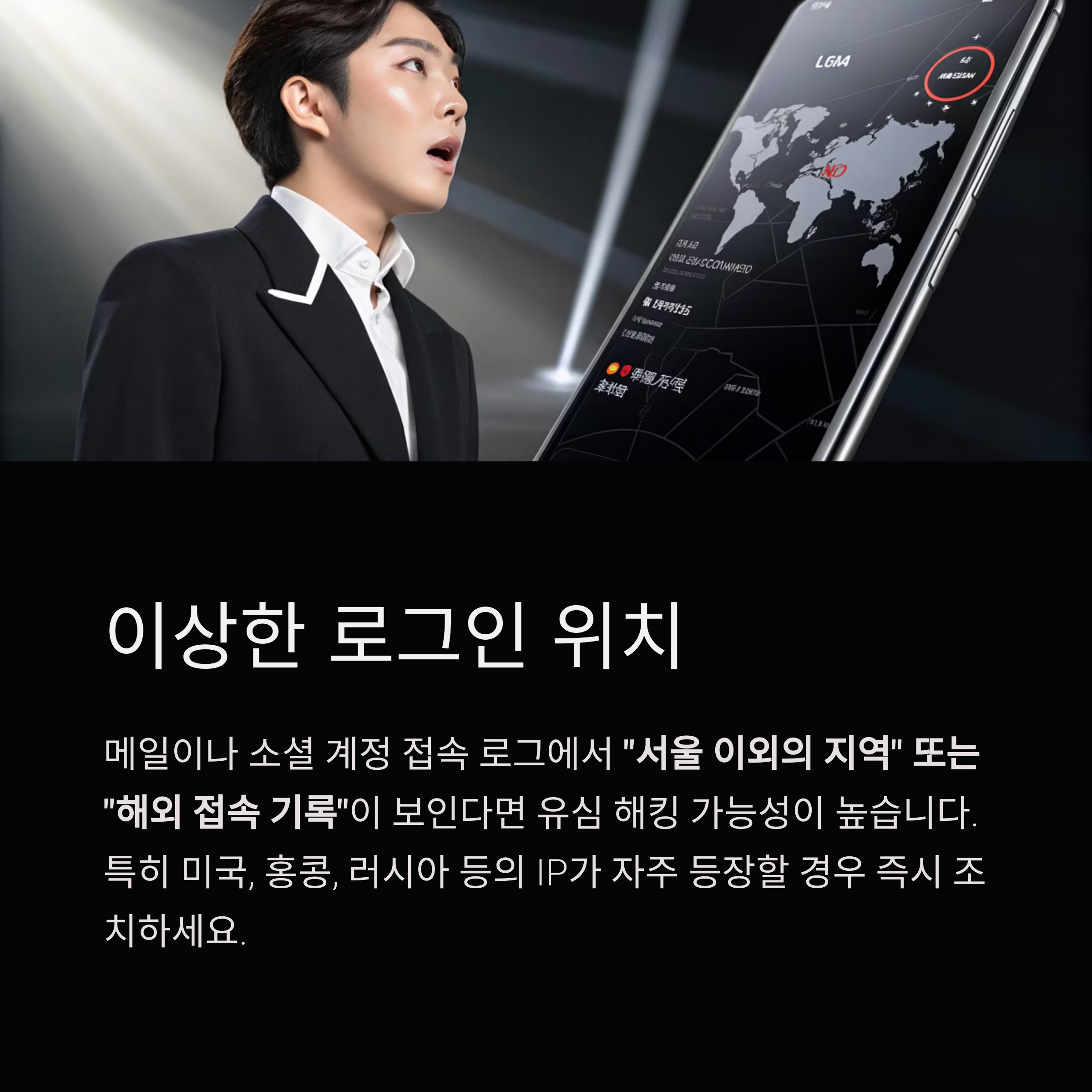 "서울 이외의 지역" 또는 "해외 접속 기록"이 보인다면,