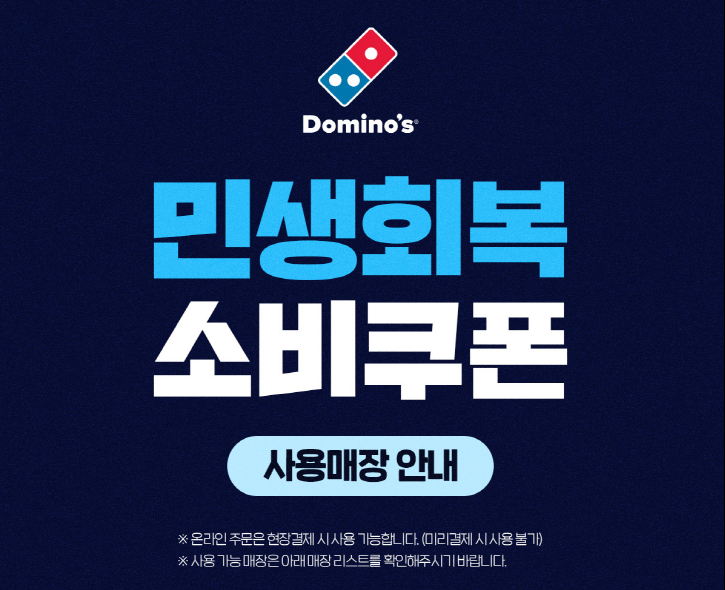 도미노피자 민생회복 소비쿠폰은 가맹점 매장에서만 사용할 수 있으며 직영점에서는 사용이 불가능합니다.