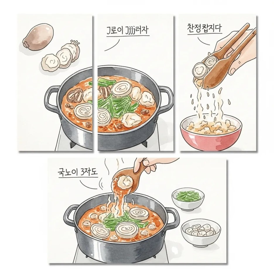 더 깊은 맛을 원한다면 전을 살짝 구워 넣거나, 콩나물로 시원하고 아삭한 식감을 더해보세요.