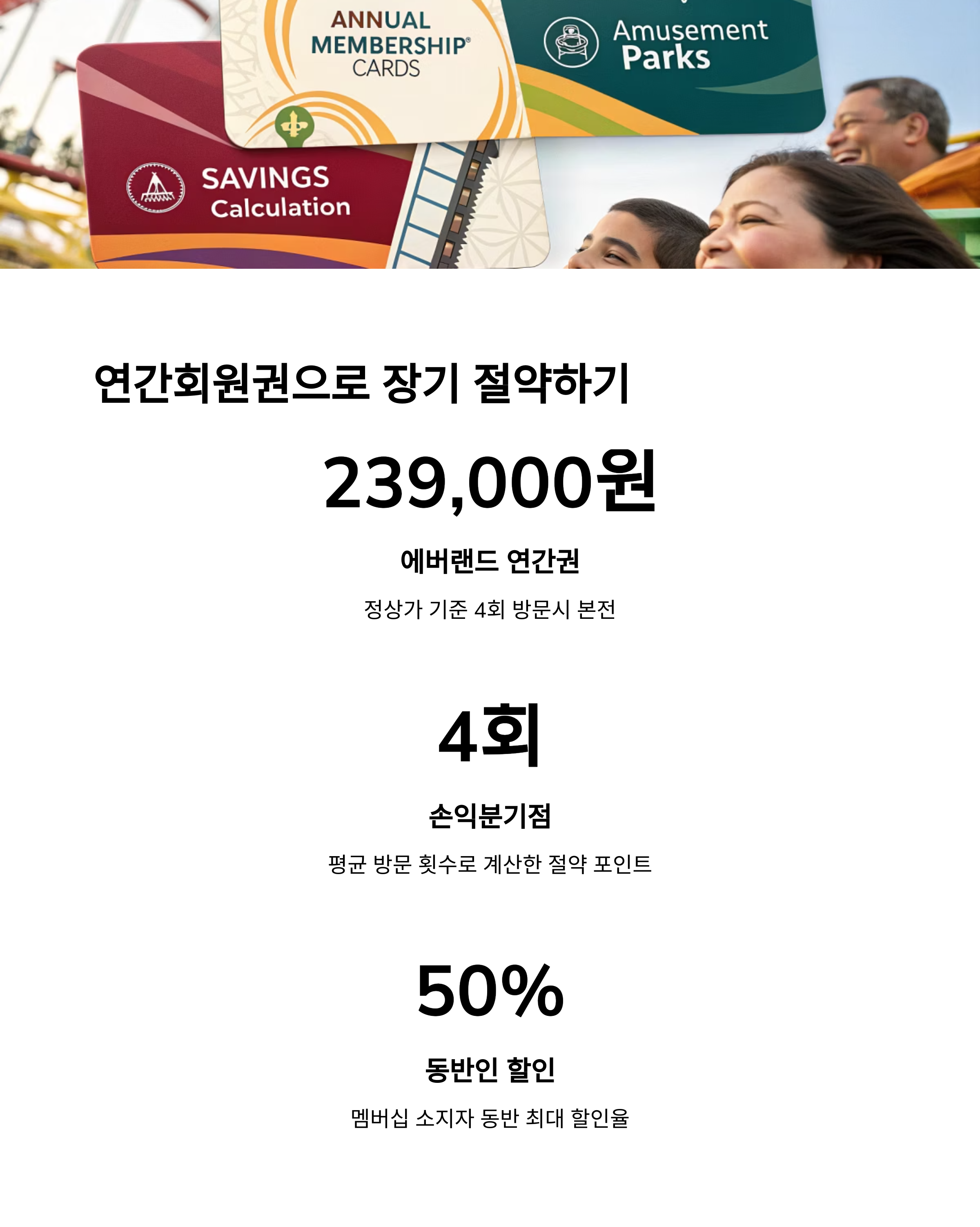 연간회원권(시즌패스)을 구매하는 것이 훨씬 경제적입니다.