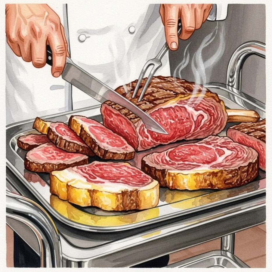 숙련된 셰프가 직접 테이블 옆에서 고기를 커팅해 주는 모습은 눈으로도 즐거운 볼거리를 제공하죠.