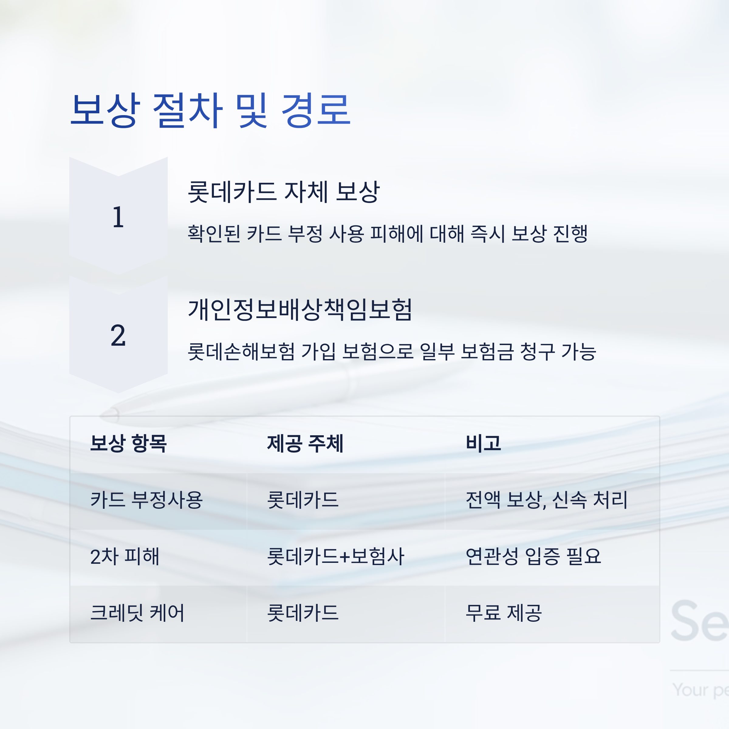 - 롯데카드 자체 보상: 확인된 카드 부정 사용 피해에 대해 즉시 보상 진행