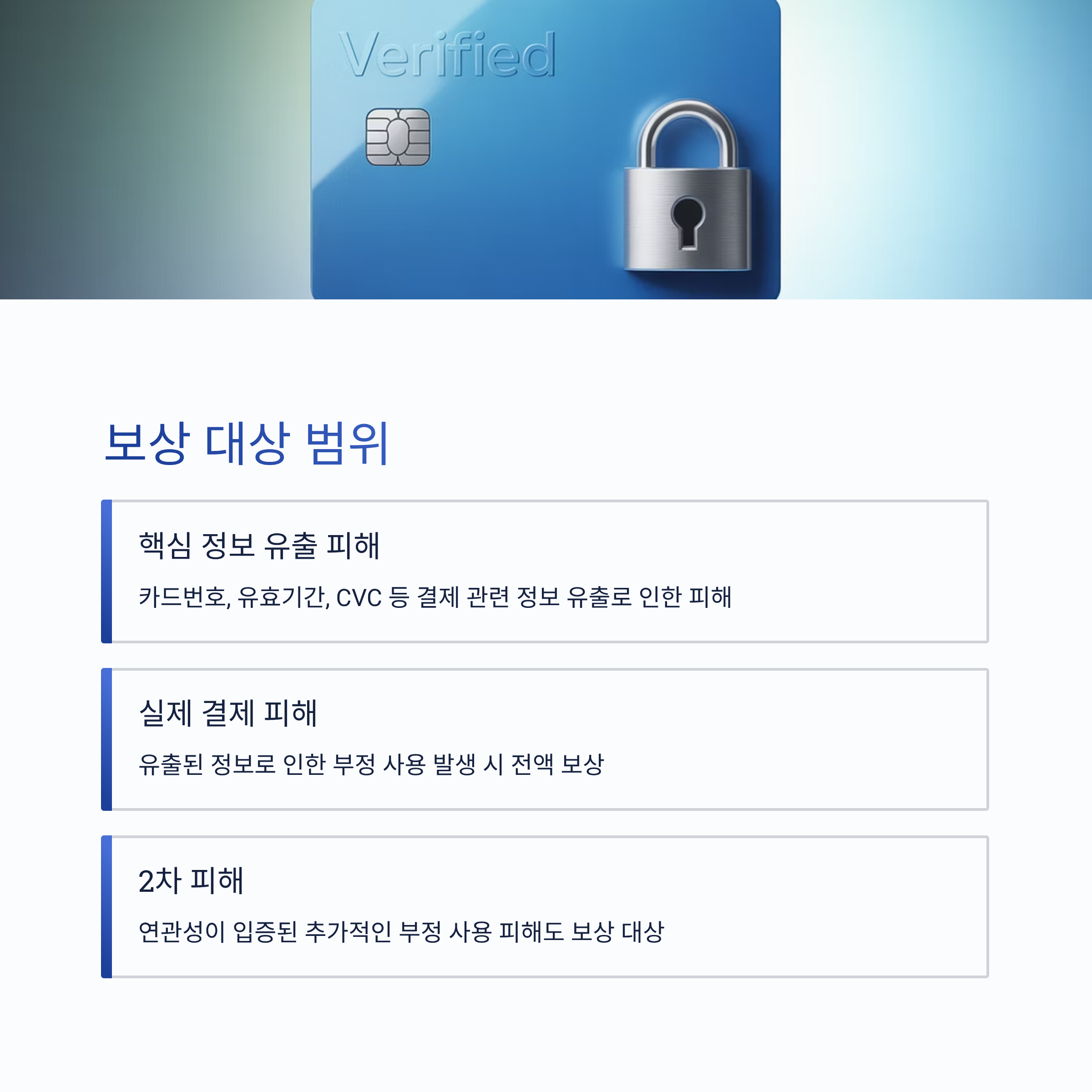 더불어, 2차 피해(예: 유출된 정보를 이용한 추가적인 부정 사용 등)에 대해서도 연관성이 입증되면 보상이 이뤄진다고 밝혔습니다.
