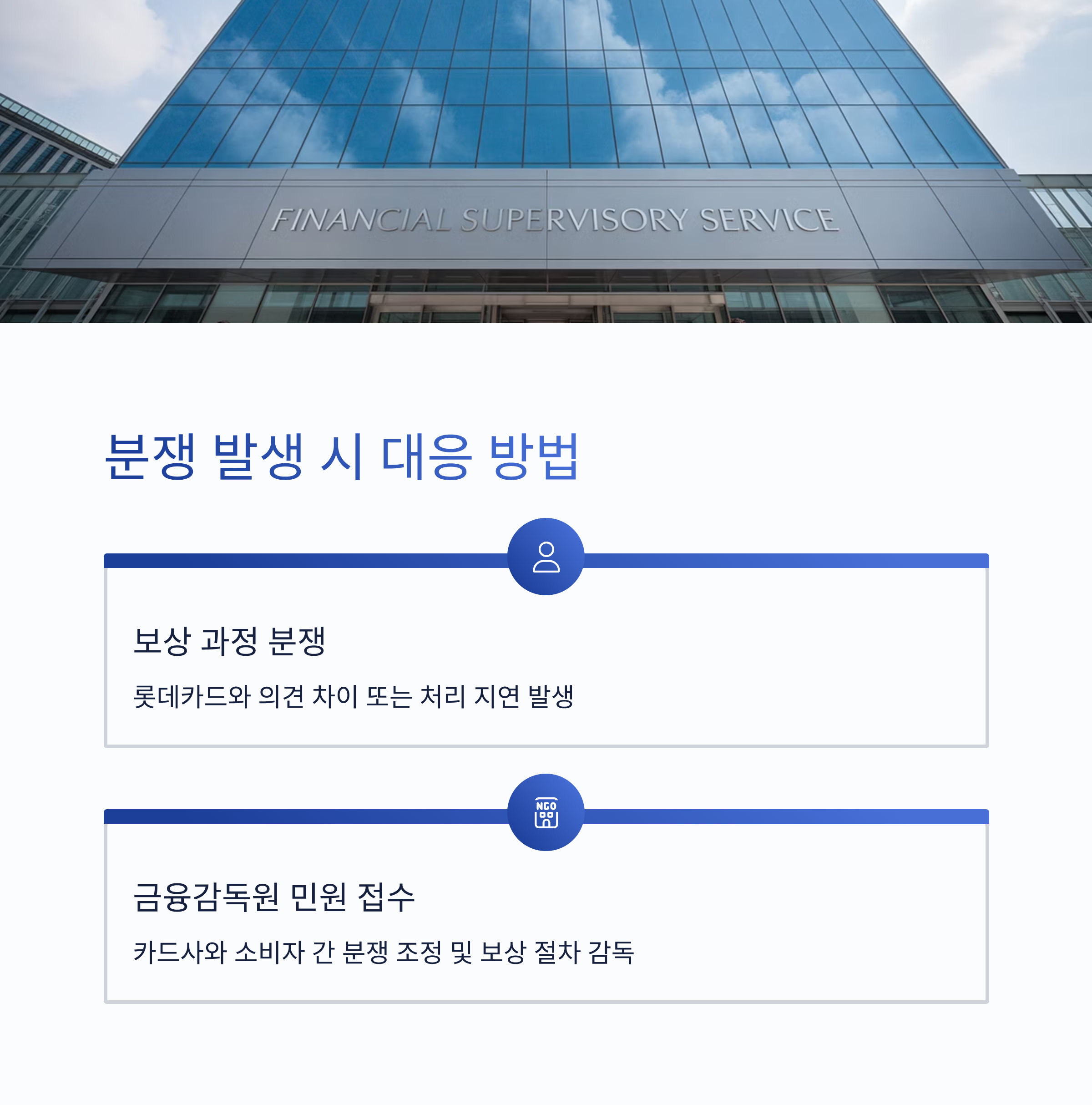 보상 과정에서 롯데카드 측과 의견이 엇갈리거나 처리 지연이 발생할 경우, 금융감독원에 민원 접수가 가능합니다.