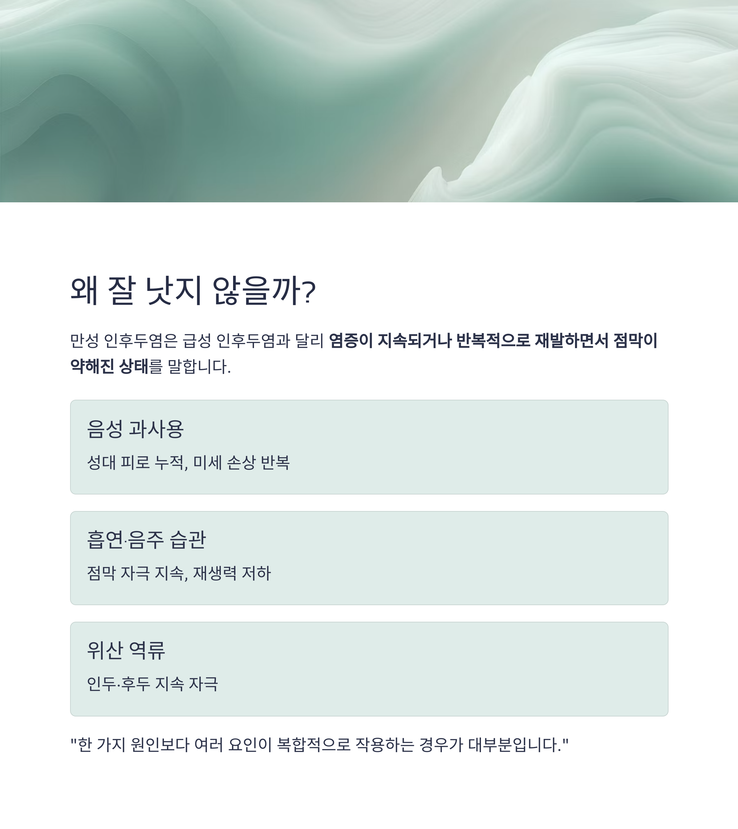 만성 인후두염은 치료보다 관리와 회복 전략이 중심입니다.