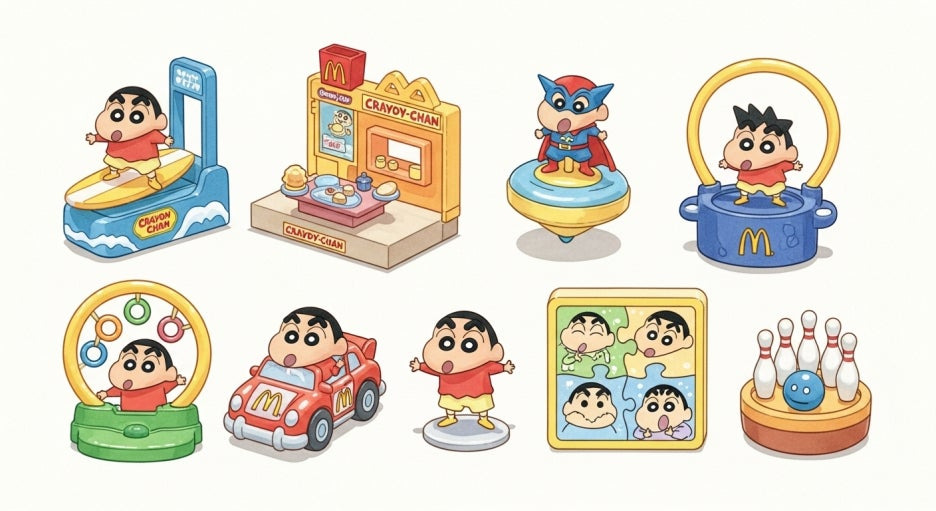 귀여운 짱구 장난감과 맛있는 해피밀 세트로 즐거운 시간을 보내시길 바라요.