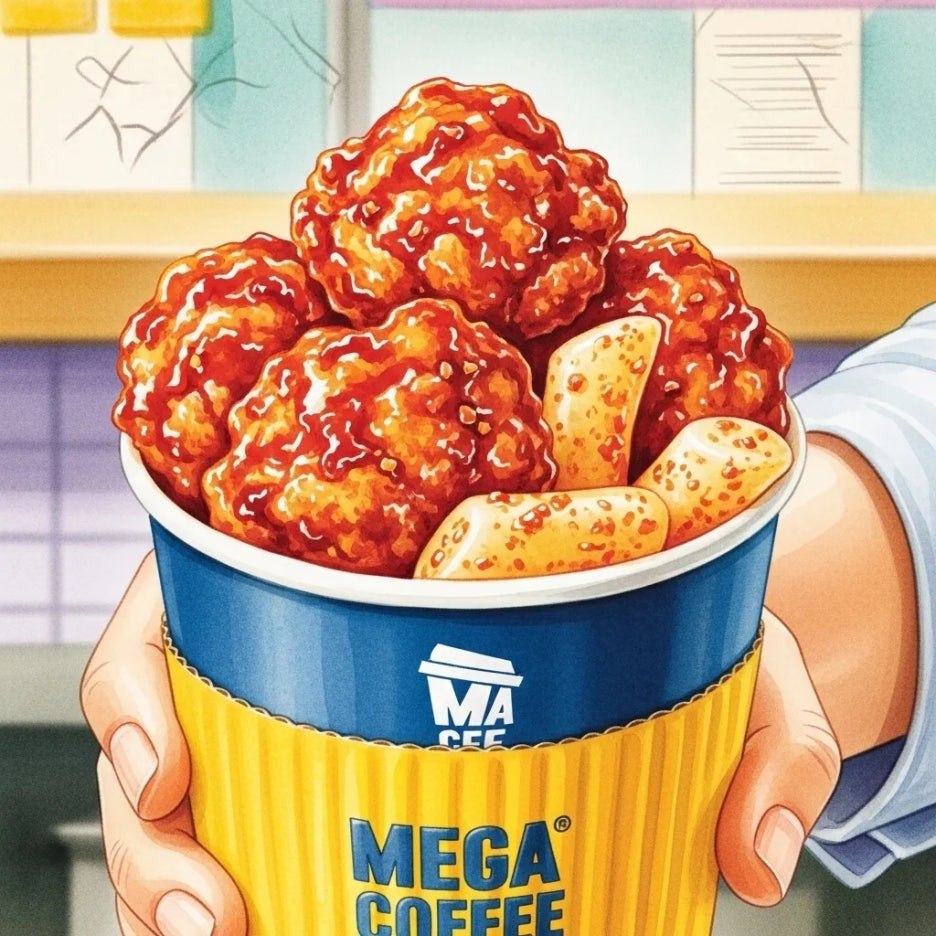 떡볶이나 컵빙수 같은 이색 메뉴로 이미 유명하지만, 이번엔 무려 `메가커피 치킨`이라니!
