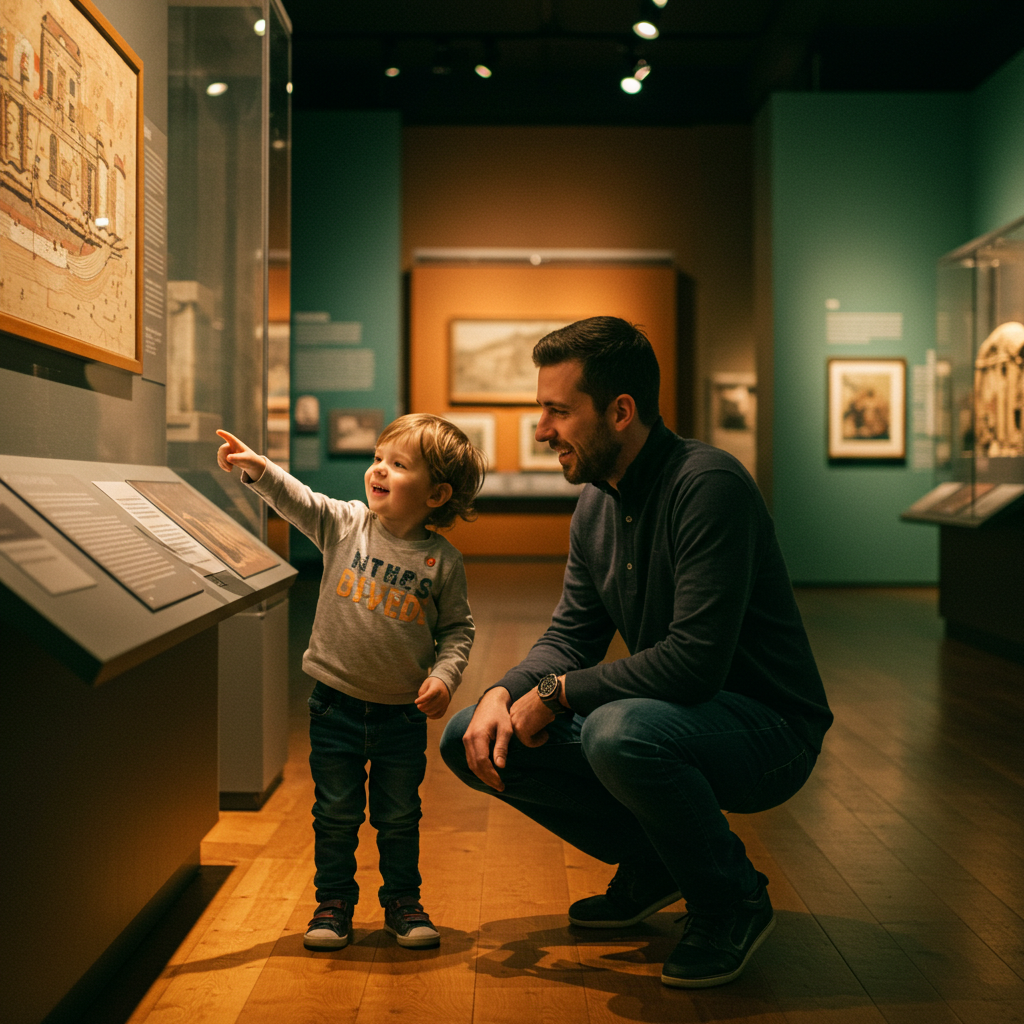 - '이건 뭐지?' 호기심 자극 질문: 유물이나 작품을 보며 "이건 뭘까?", "어떻게 만들었을까?" 같은 질문을 던져 아이가 스스로 생각하게 유도해 보세요. 정답이 중요한 게 아니라, 아이의 생각을 듣는 것 자체가 의미 있어요.