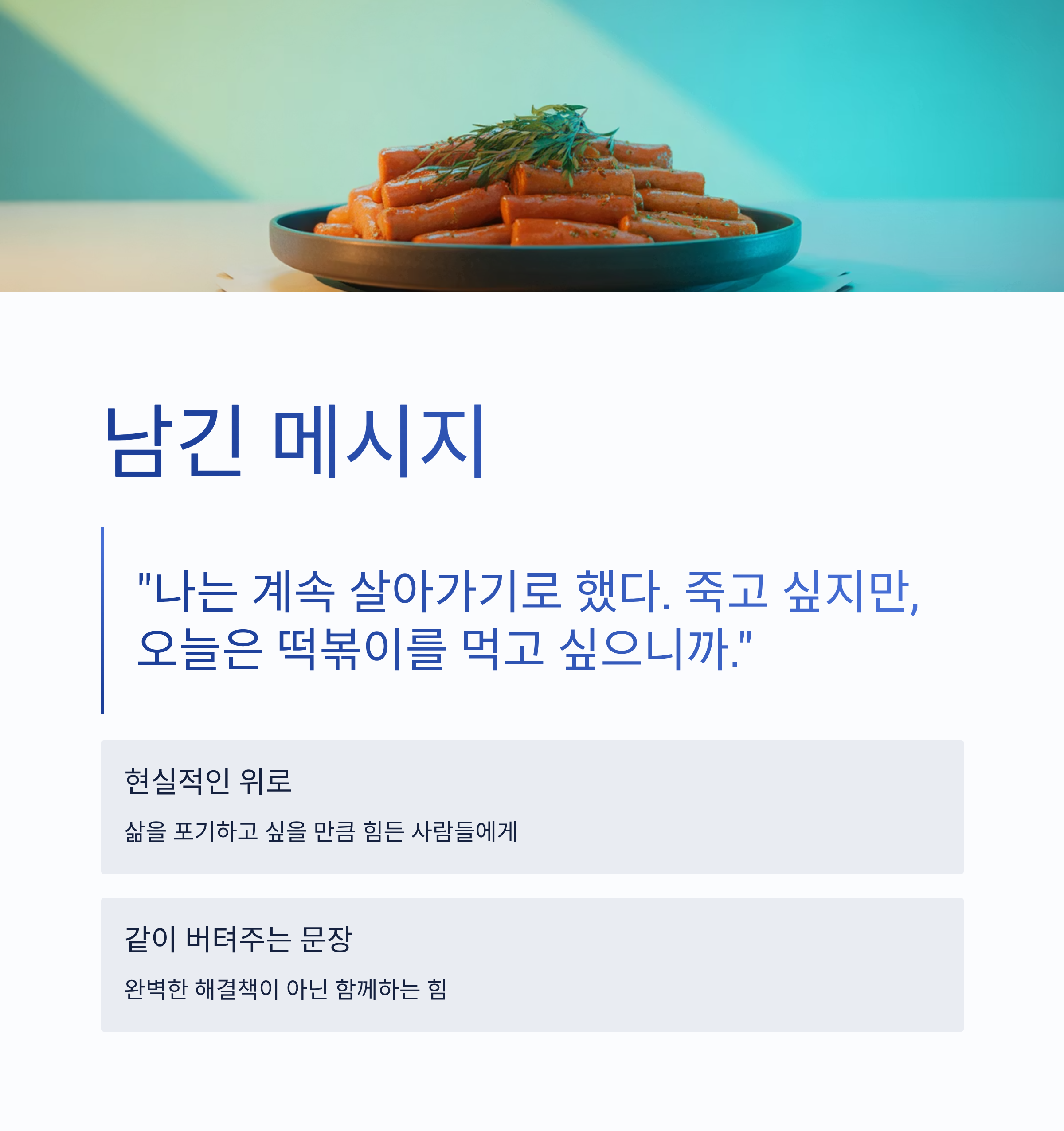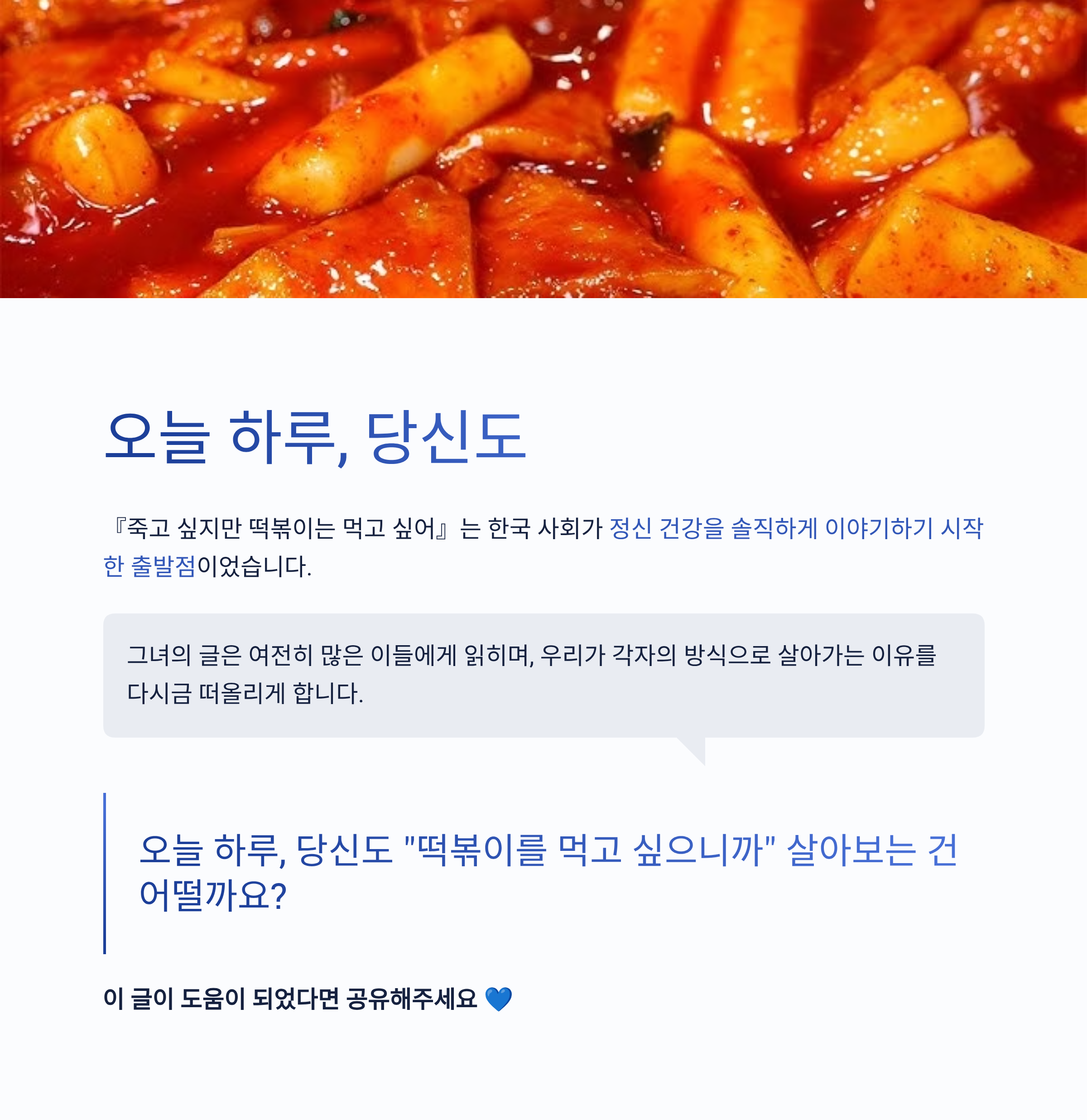 💡 『죽고 싶지만 떡볶이는 먹고 싶어』가 남긴 메시지