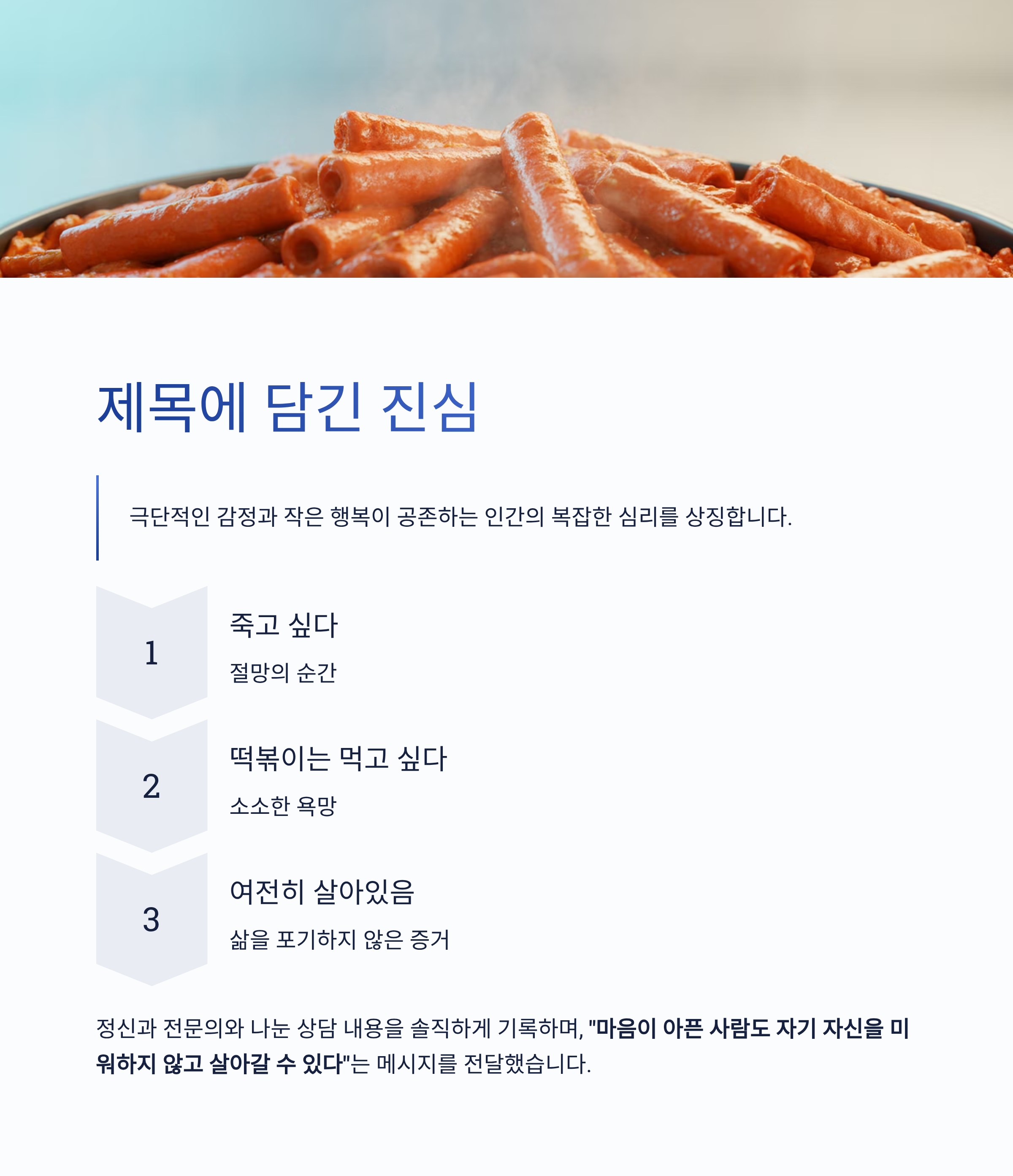 “죽고 싶다”는 절망과 “떡볶이는 먹고 싶다”는 소소한 욕망이 함께 있는 순간,