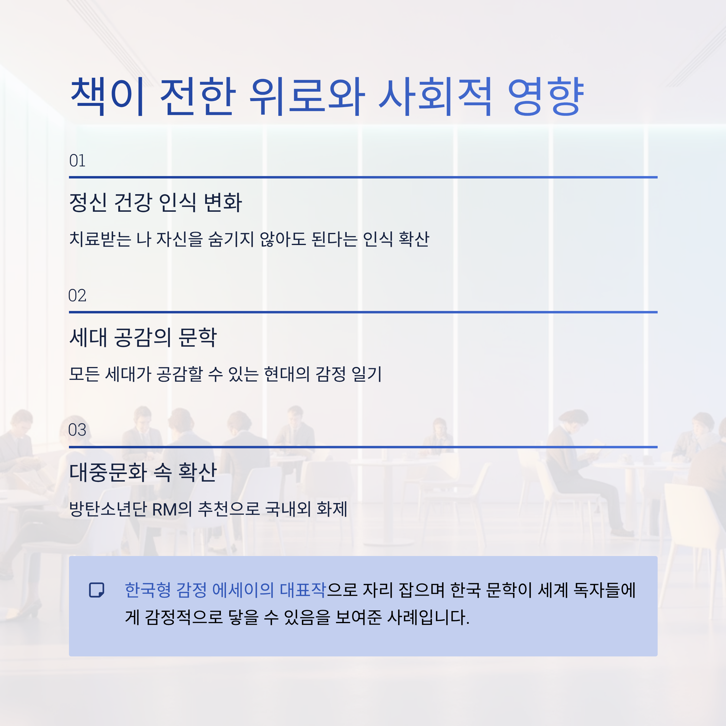 이 용기는 많은 독자에게 “나도 괜찮지 않아도 괜찮다”는 메시지를 전했습니다.