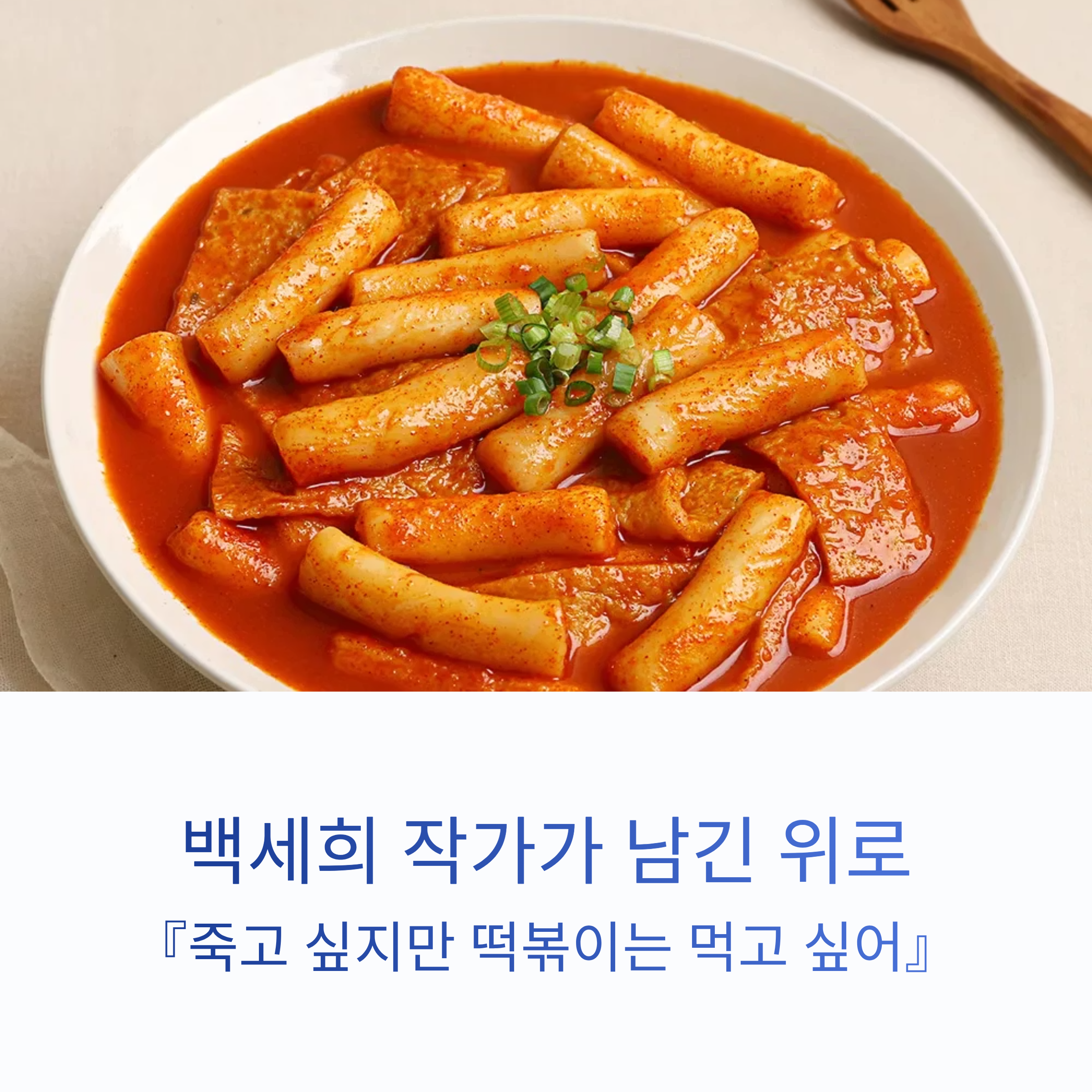 죽고 싶지만, 오늘은 떡볶이를 먹고 싶으니까.”
