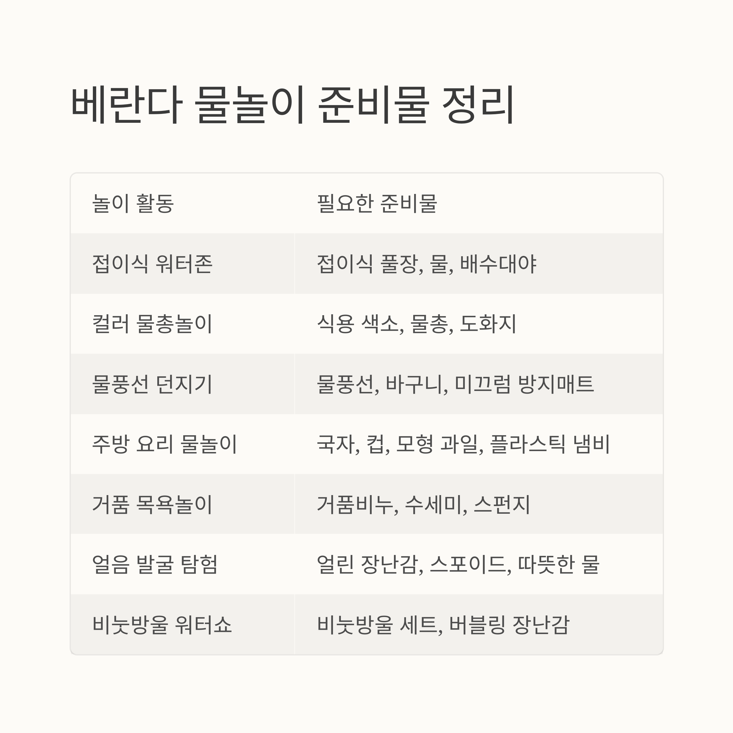 베란 다 물놀이 활동 정리표
