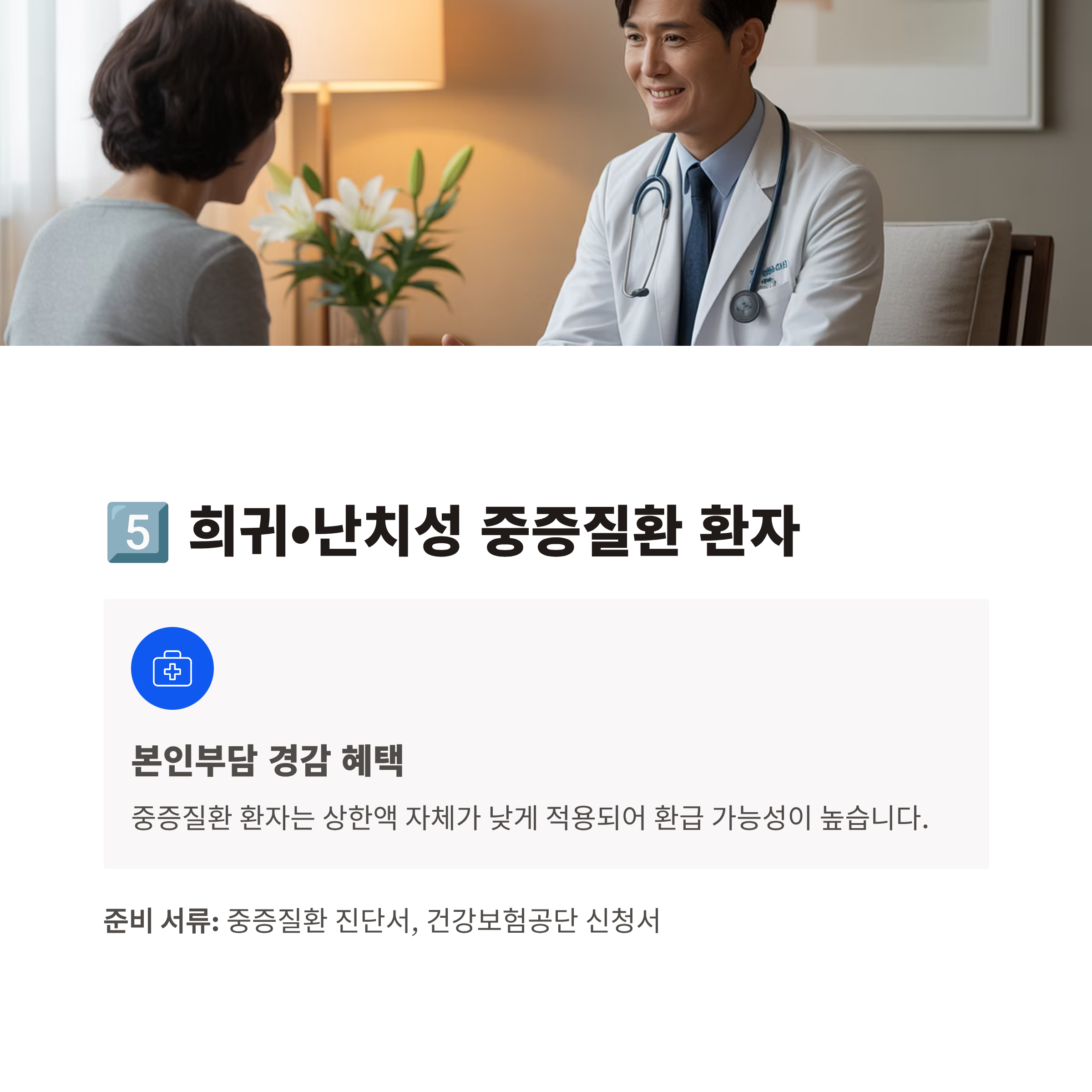 - 환급 가능성: 원칙적으로 개인 기준이나, 중증환자에 한해 가족 합산 기준 적용 가능