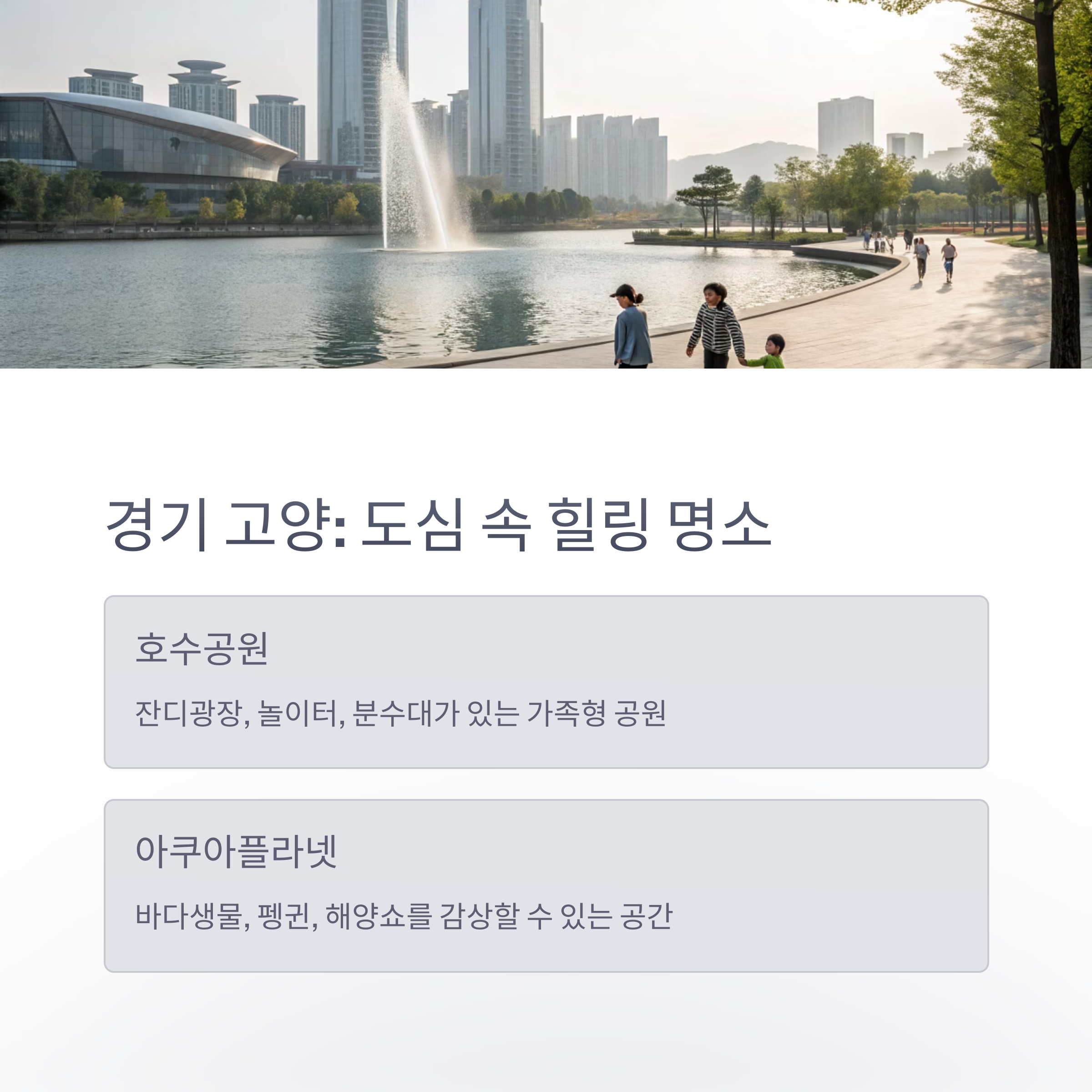 | 고양 | 호수공원 | 놀이터, 수족관 | 산책, 휴식 |