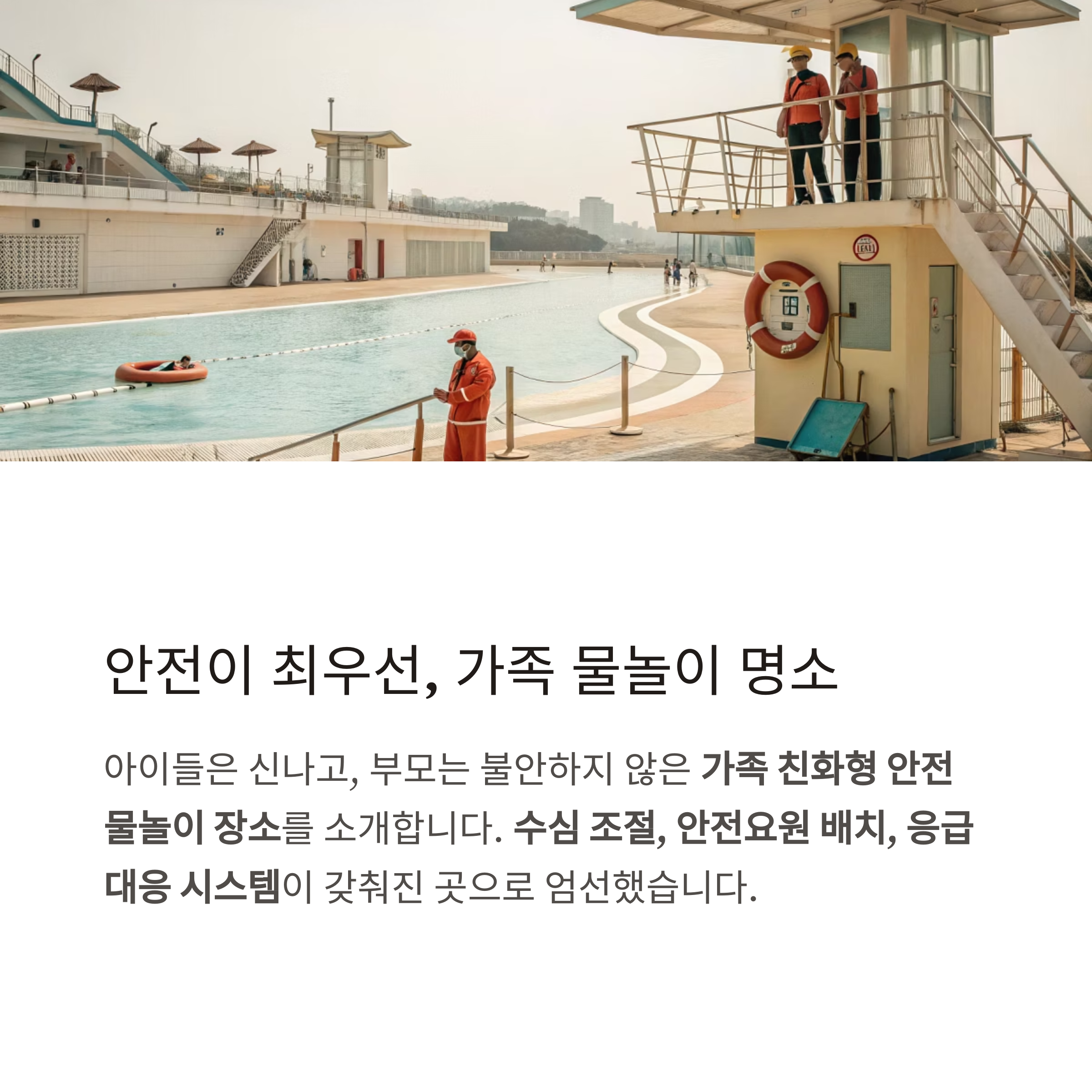 전문 안전요원이 상시 배치되고, 일일 수질검사 시스템이 가동됩니다.