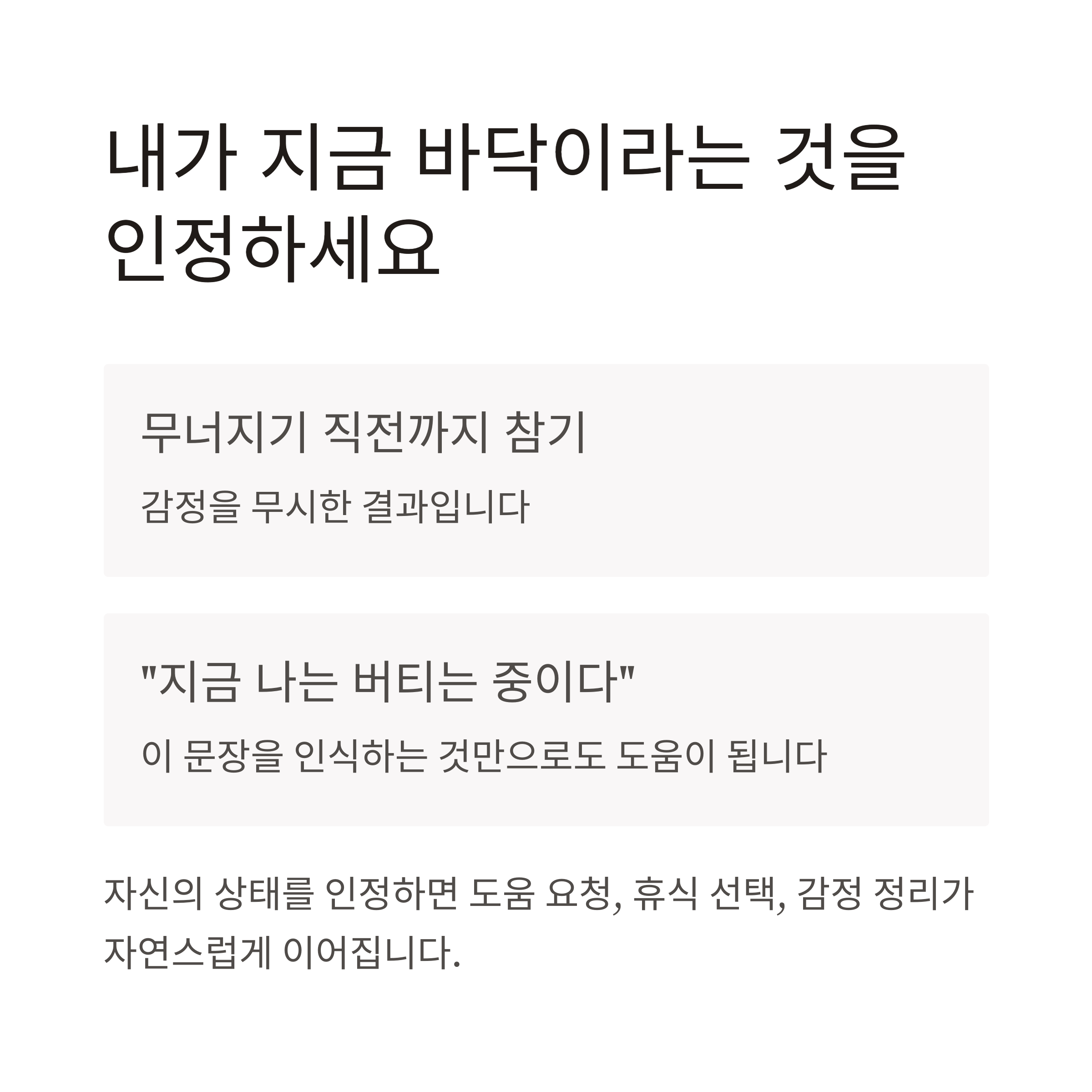 “지금, 내 감정이 한계에 왔다”는 걸 알아차리는 연습이 필요합니다.