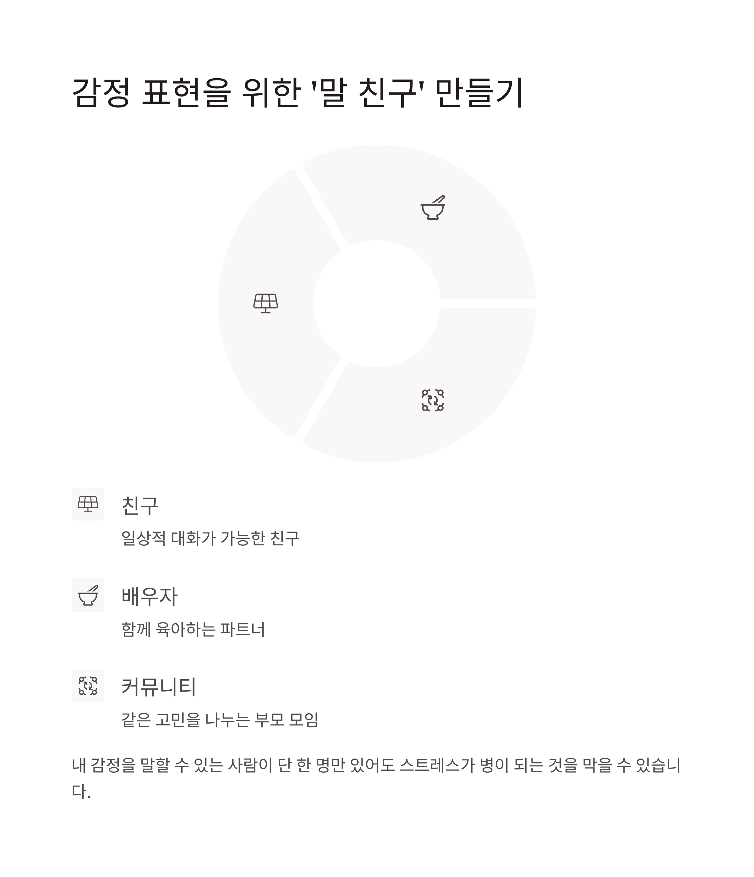 “오늘 나 너무 힘들었어”라는 말을 안전하게 꺼낼 수 있는 대상이 필요합니다.