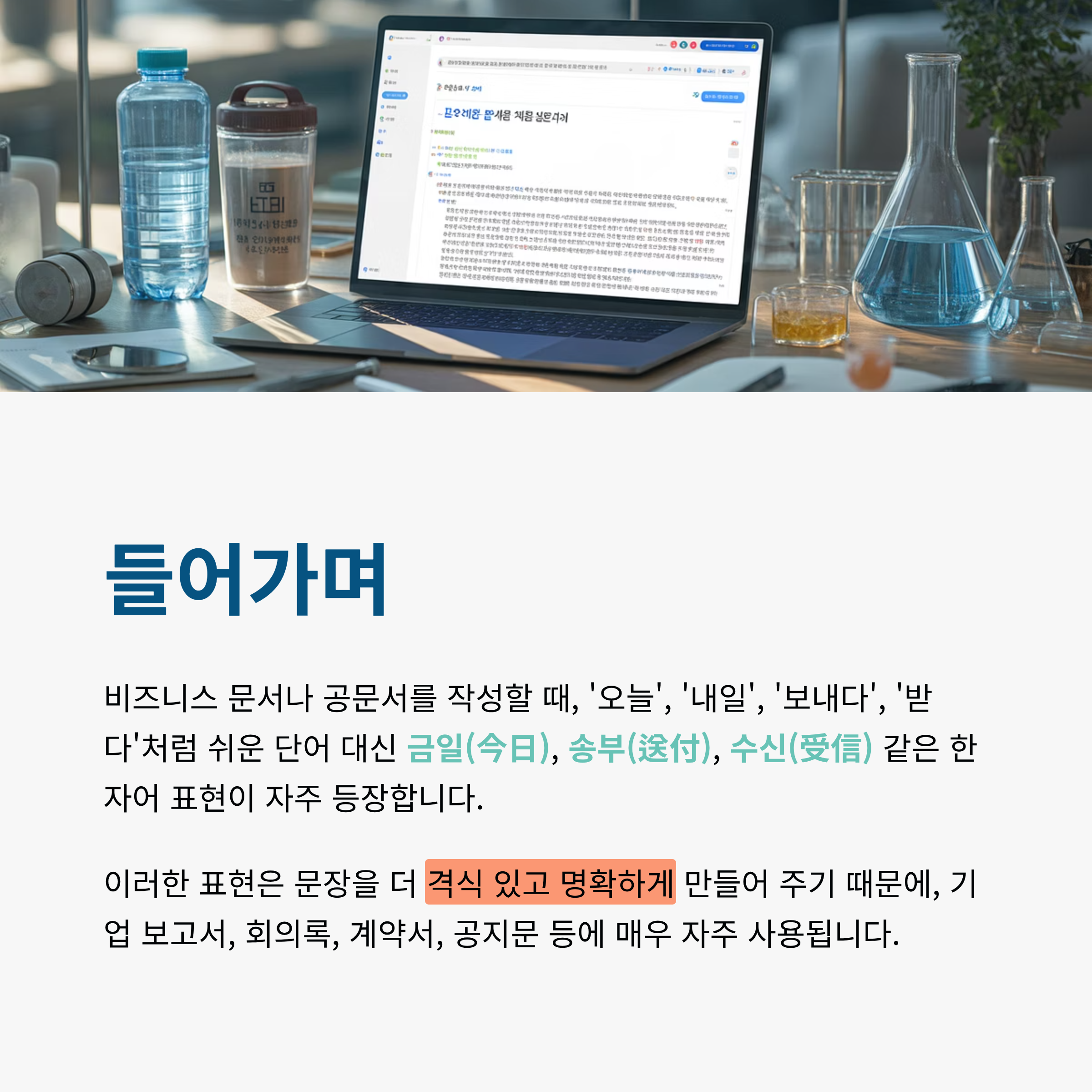 - 공문서와 비즈니스 이메일에서는 한자어 표현이 신뢰감과 전문성을 높여줍니다.