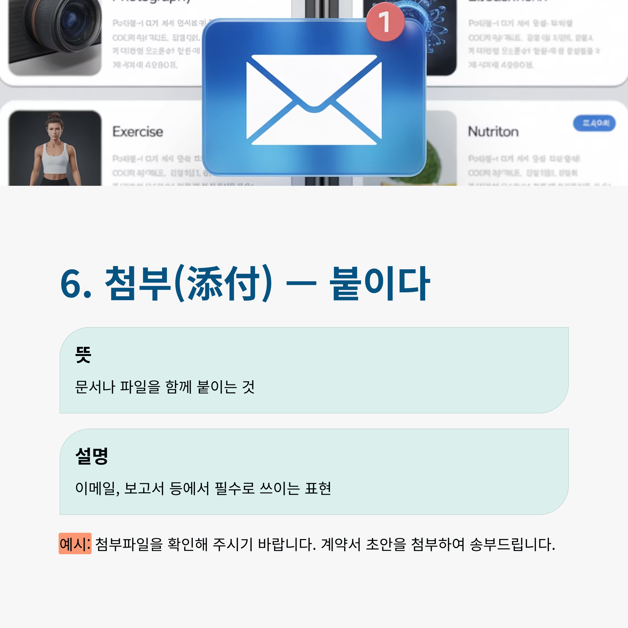 | 6 | 첨부(添付) | 붙이다 | 첨부파일 확인 부탁드립니다. |