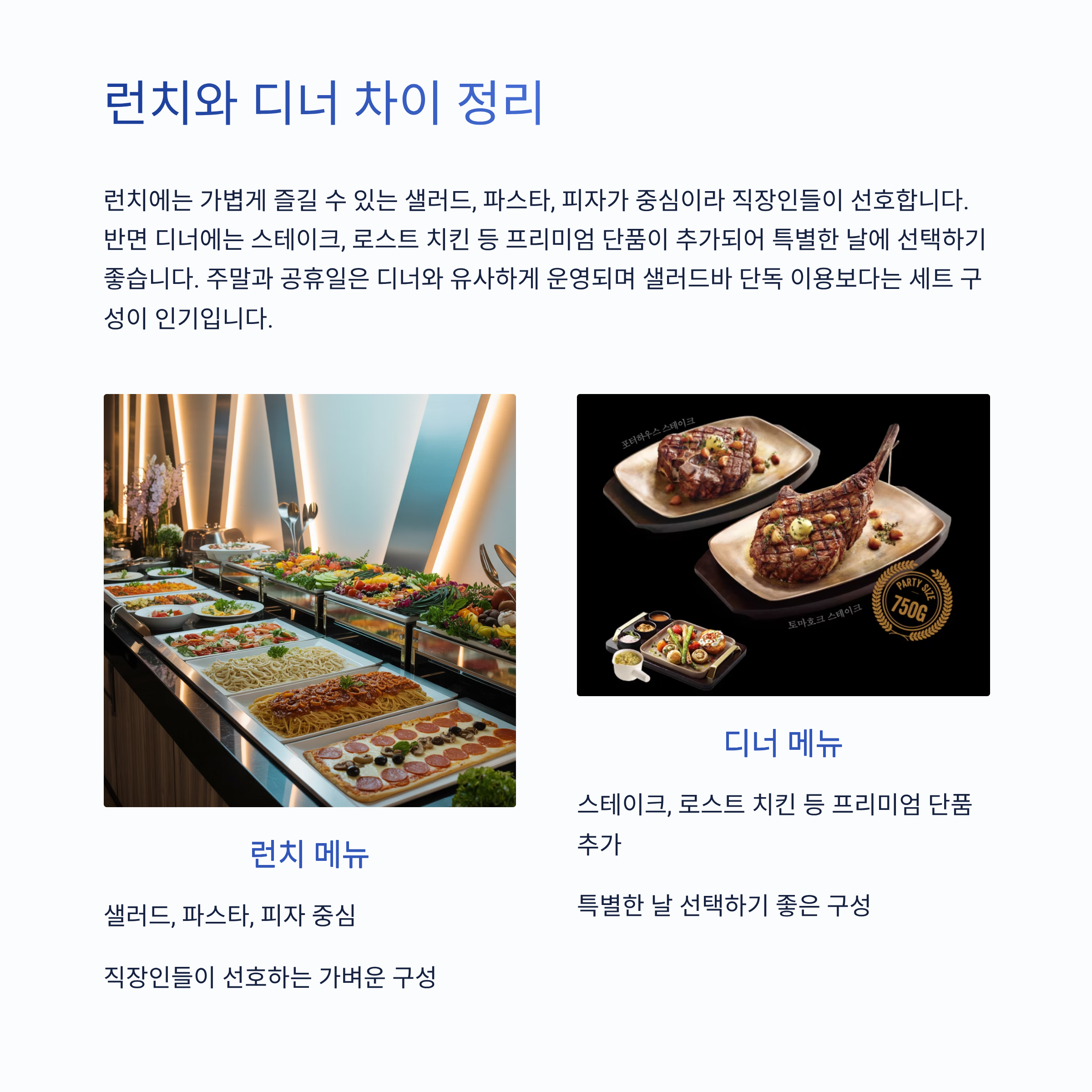 | 구분 | 평일 런치 | 평일디너 / 주말 및 공휴일 |