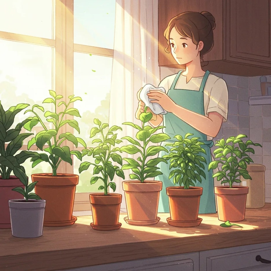 실내 먼지가 잎에 쌓이면 광합성을 방해할 수 있으니, 주기적으로 샤워기로 잎을 깨끗하게 씻어내리거나 마른 수건으로 닦아주는 것도 잊지 마세요.