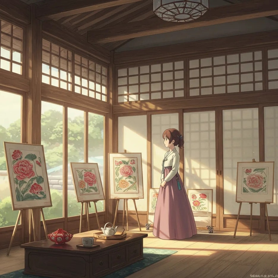 햇살이 스며드는 한옥 구조의 서촌라운지 공간 안에서 작가들은 자신들의 경험과 감정을 섬세한 풍경으로 재구성했어요.