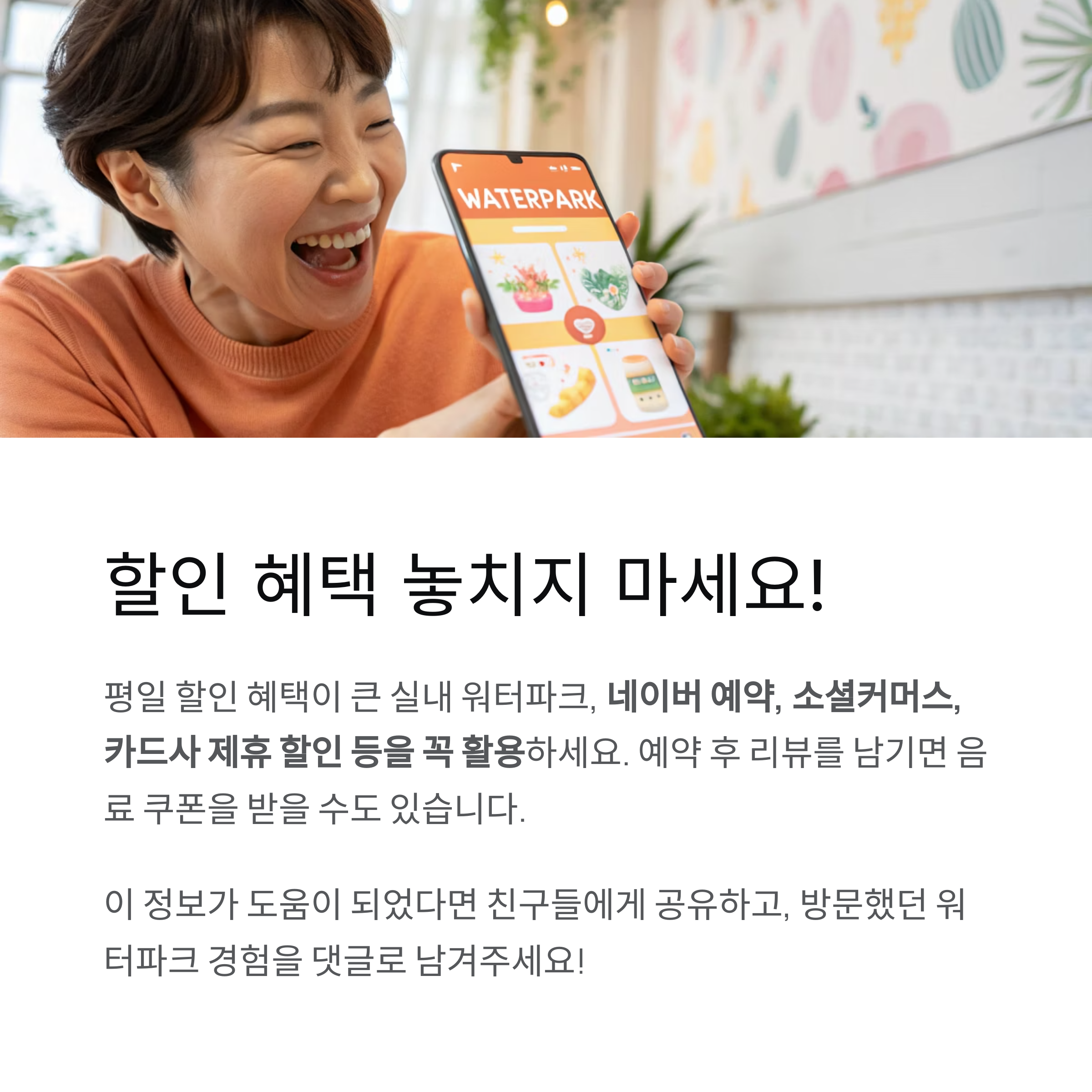 일부 실내 워터파크는 평일 할인 혜택이 매우 큽니다.
