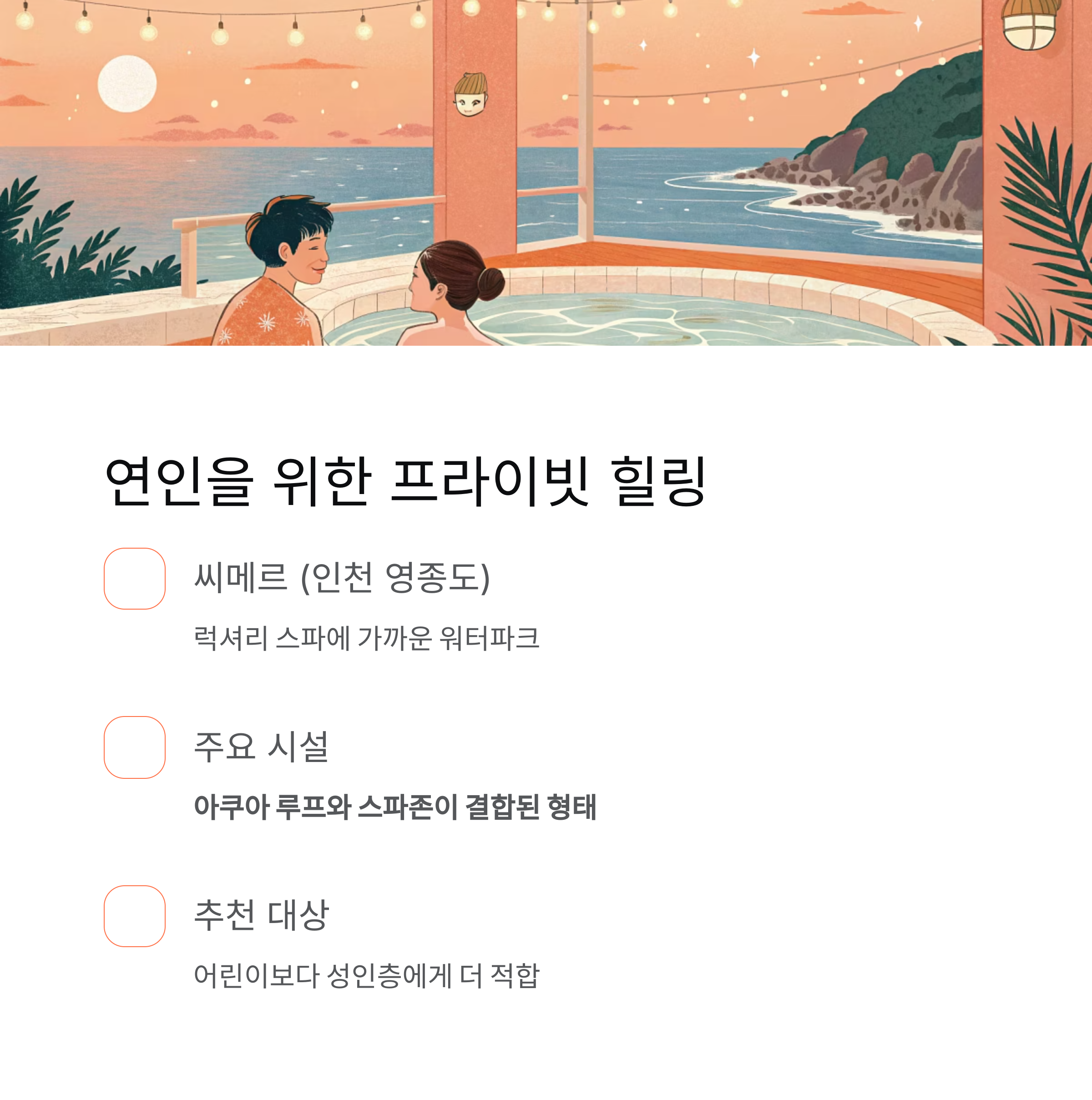 | 씨메르 | 인천 영종도 | 럭셔리 스파형 | 커플, 성인 |
