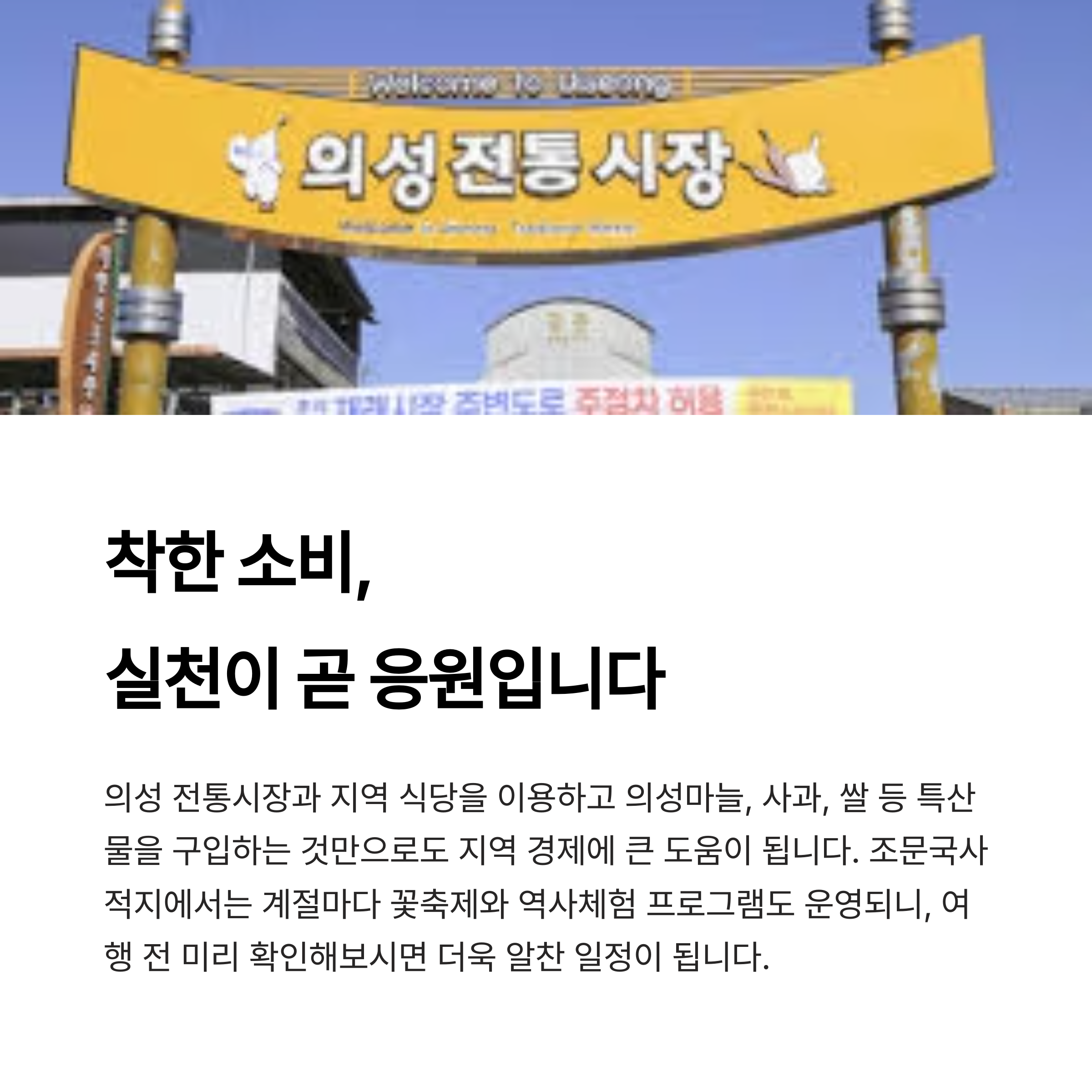 의성 전통시장과 지역 식당을 이용하고