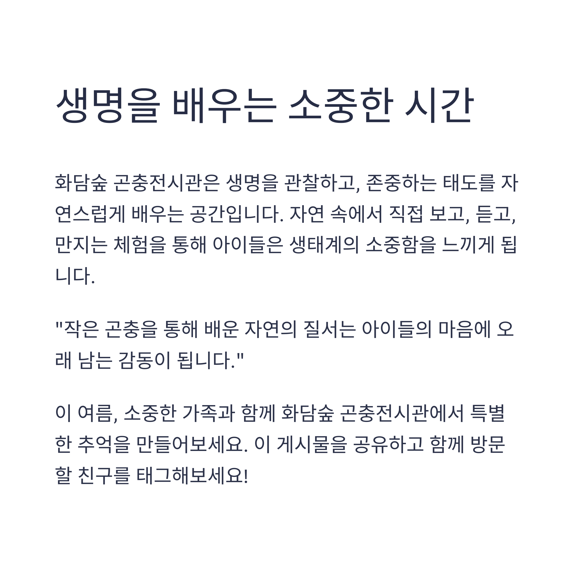 이 글에서는 곤충전시관의 구성, 체험 프로그램, 관람 팁 등을 안내드립니다.