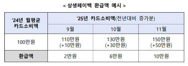 이번 상생페이백은 2025년 9월부터 11월까지 3개월 동안 진행됩니다.