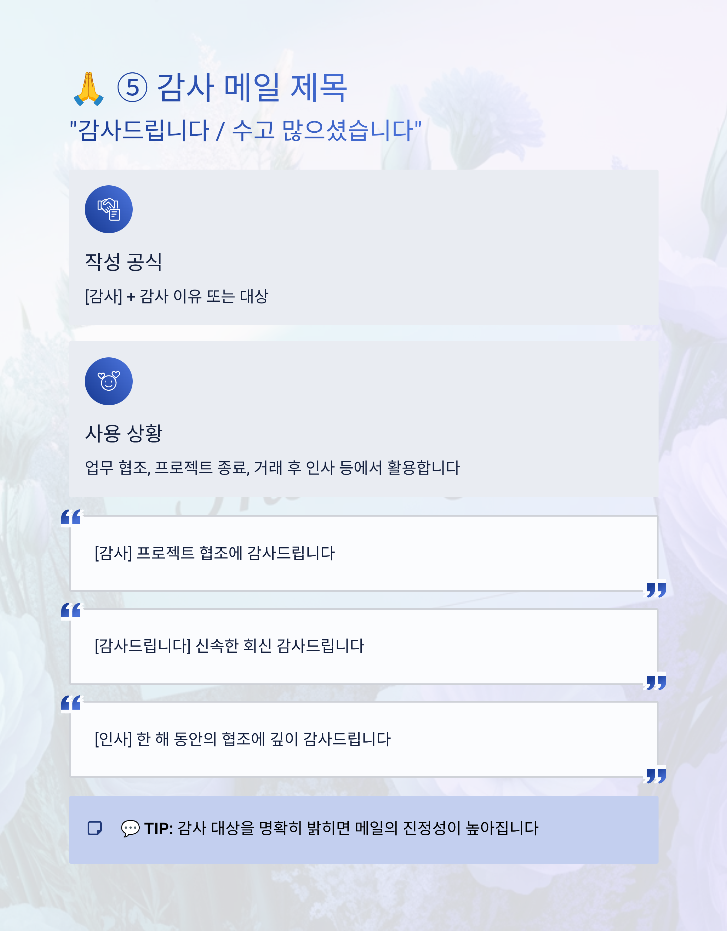 🙏 ⑤ 감사 메일 제목 — “감사드립니다 / 수고 많으셨습니다”