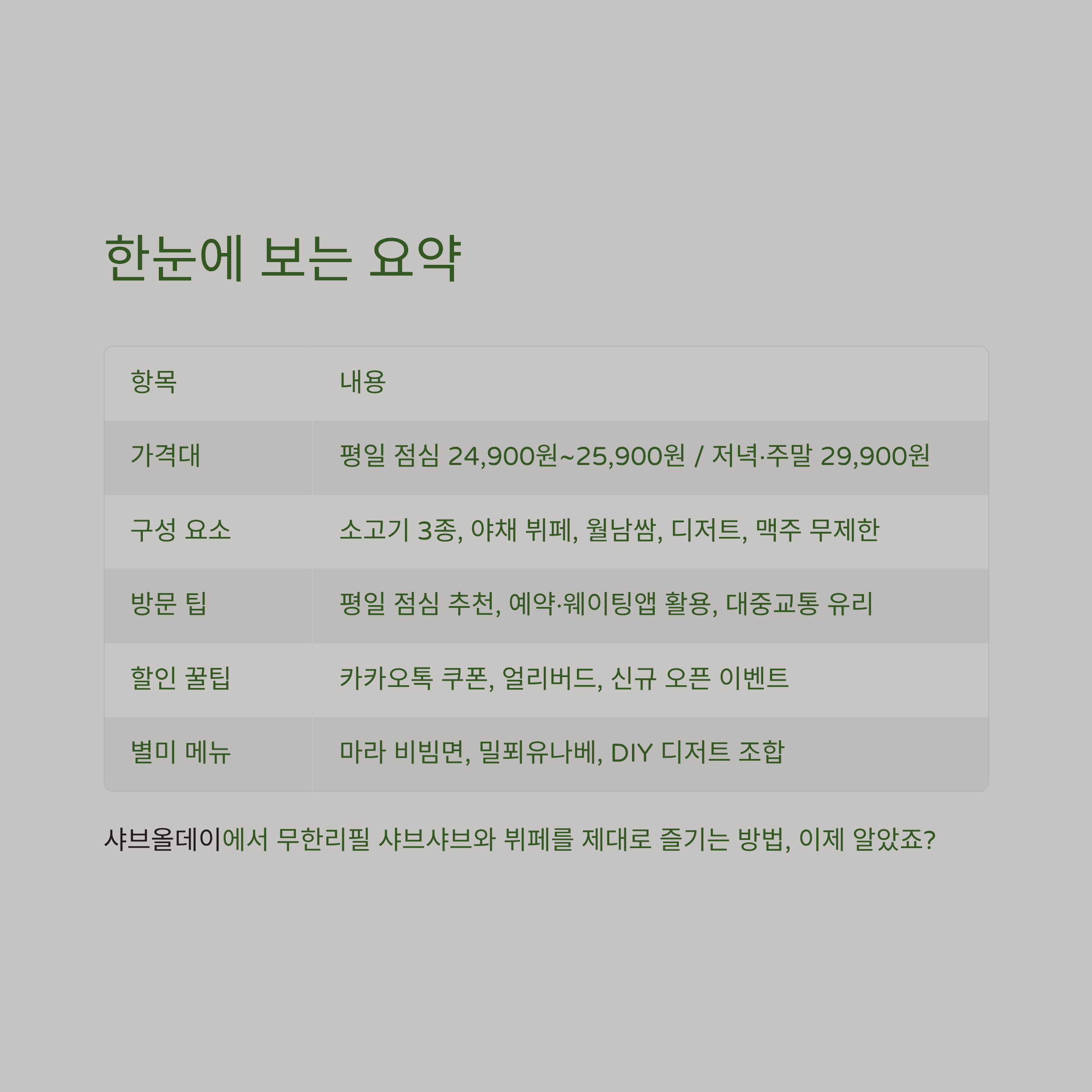 가격대별 차이, 이용 시간, 메뉴 구성, 할인 혜택까지 정리해 드리니