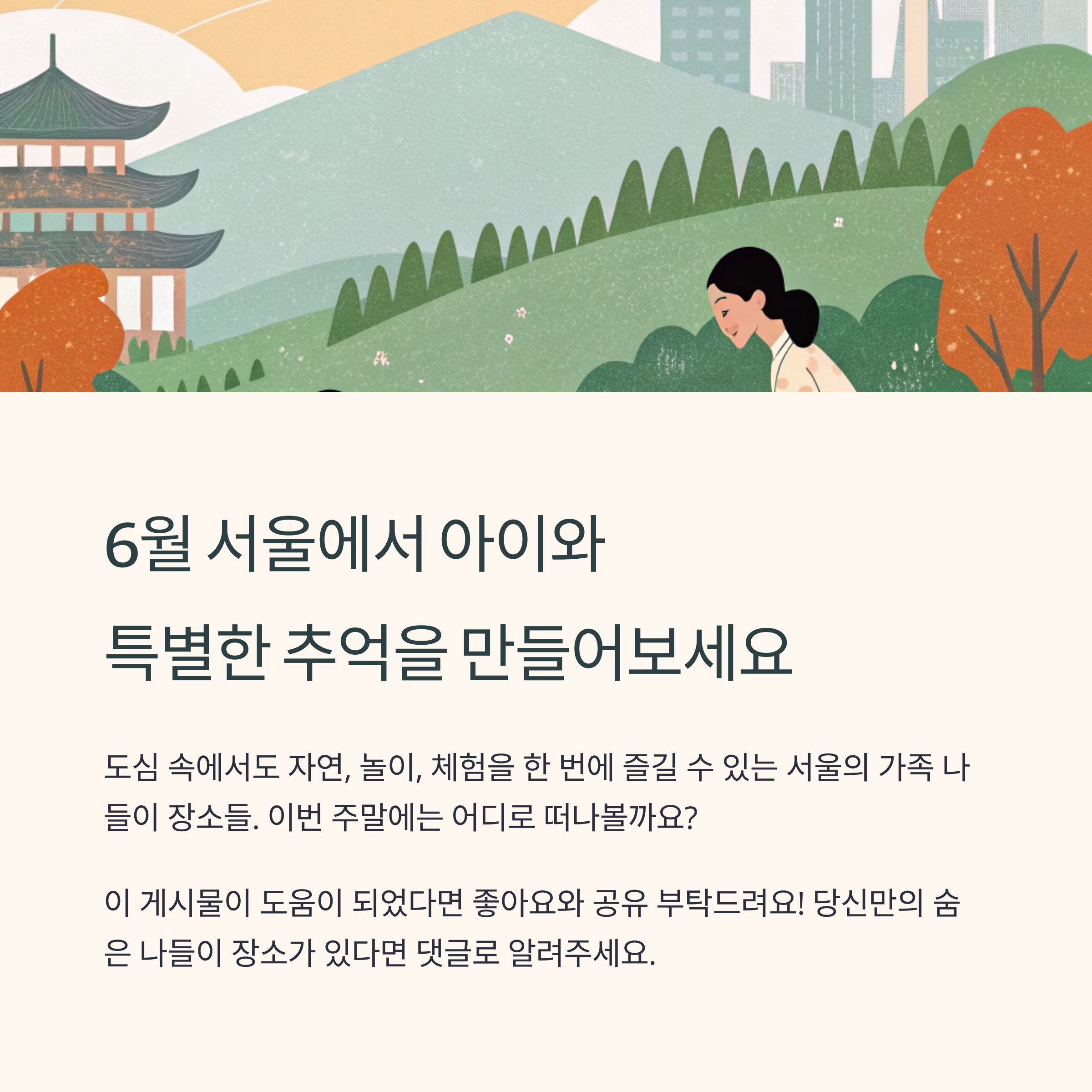 6월은 서울 도심 속에서도 아이와 즐기기 좋은 계절입니다.
