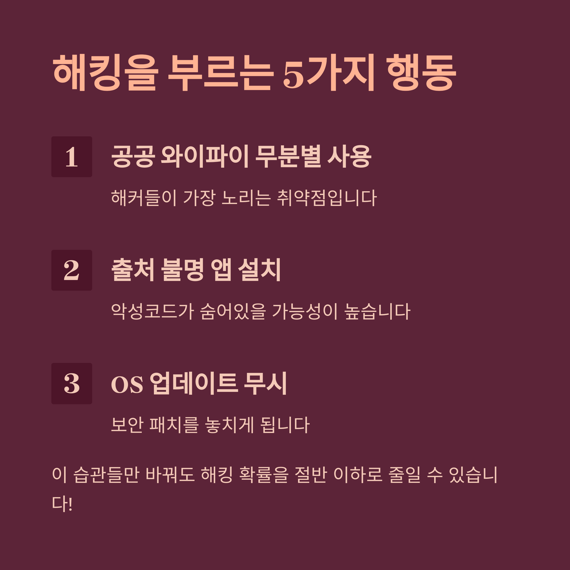 해킹을 부르는 행동 TOP 5 (목록 스타일)